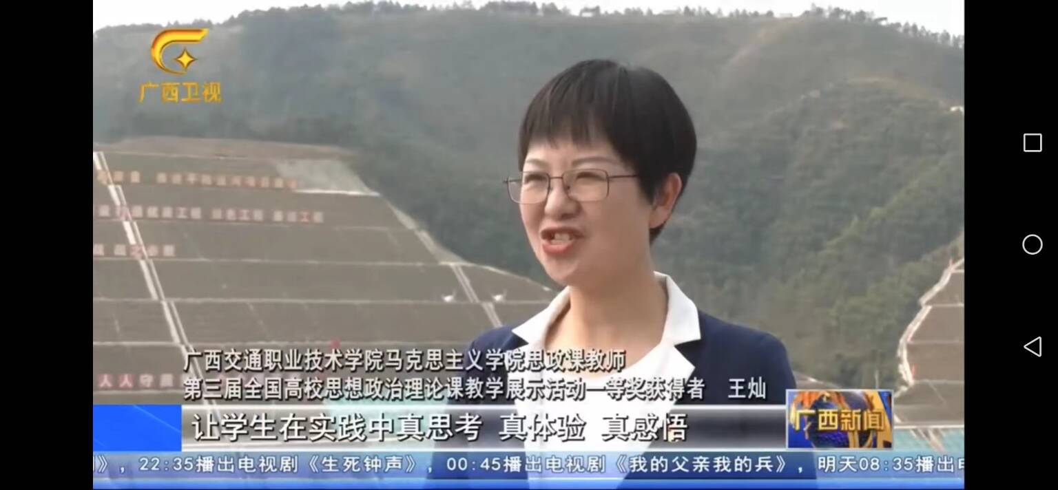 日前,广西电视台刊出《广西牢记嘱托着力办好立德树人“关键课程”》专题节目,镜头里,广西交职院马克思主义学院教师王灿带领学生走进平陆运河马道枢纽,动情讲述着把思政课开在国家重大项目现场的切身体会。不久前,她在第三届全国高校思想政治理论课教学展示活动中荣获一等奖。