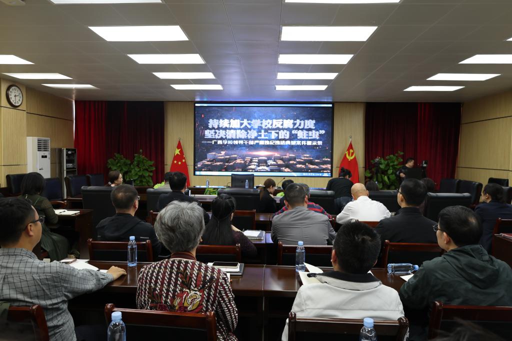 会上,与会人员还集中观看了警示教育专题片《持续加大学校反腐力度,坚决清除净土下的“蛀虫”—广西学校领导干部严重违纪违法典型案例警示录》。
