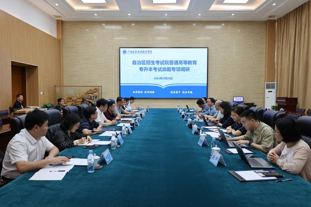 (学校办公室 讯)3月25日上午,自治区招生考试院党委书记、院长刘冰率调研组一行到PP电子开展普通高等教育专升本考试命题专项调研。学校党委书记陈湘如、校长李文勇、副校长陈海峰、副校长陈正振陪同调研。