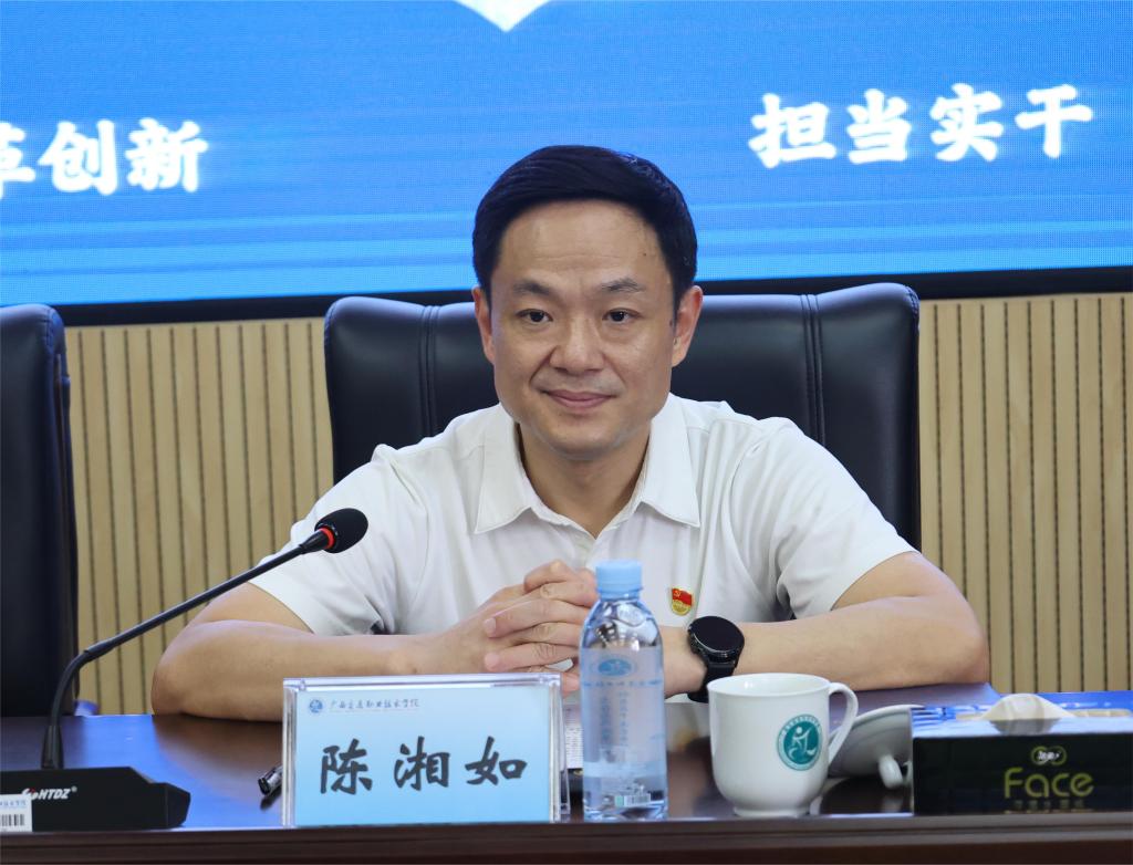 陈湘如书记详细介绍了学校党建工作的基本情况,他指出,学校以高质量党建引领和推动学校事业高质量发展,以学校事业高质量发展检验党建工作成效,在党建与业务融合上,营造了“一融双高”的浓厚氛围,取得了一系列党建类和“双高”类标志性成果。