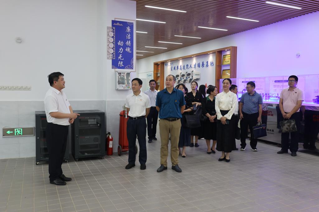 在PP电子领导陪同下,唐高华副书记一行实地走访PP电子汽车党建文化示范园、“红色匠心”课程思政实践教学基地等育人阵地。