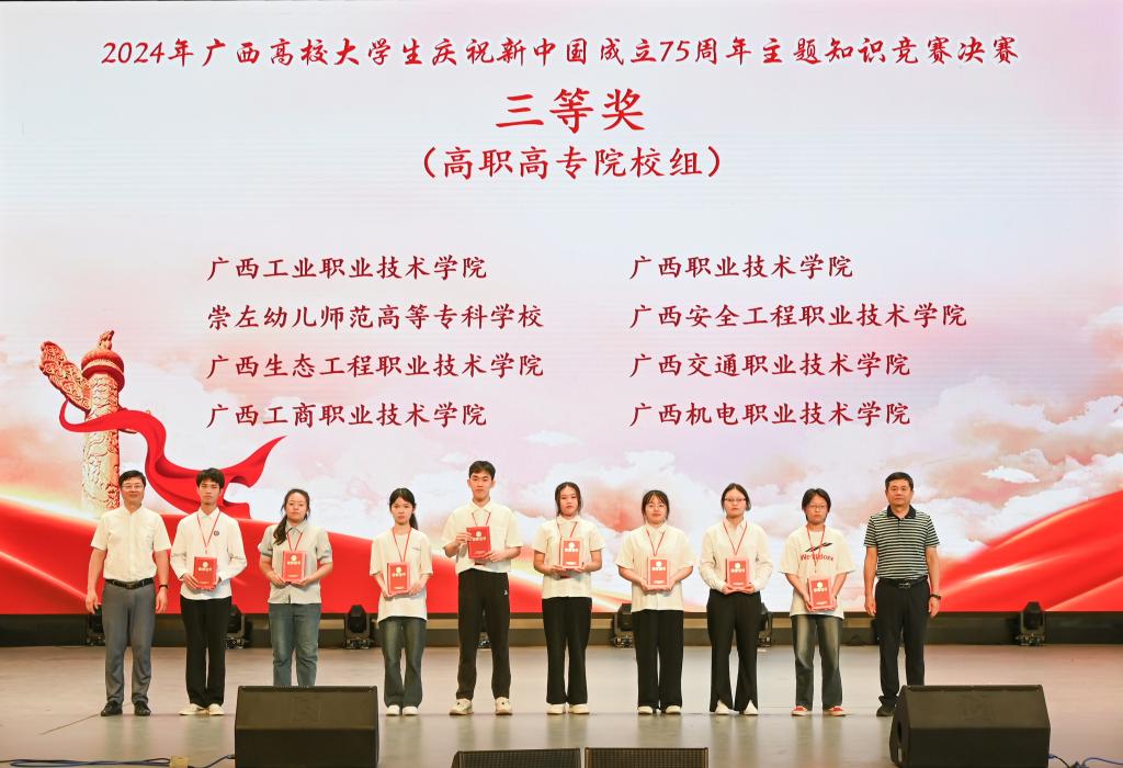 (图书馆讯)5月25日,广西高教学会图书馆专业委员会、广西高校图书情报工作指导委员会主办的广西高校大学生庆祝新中国成立75周年主题知识竞赛决赛在广西生态工程职业技术学院举行。PP电子参赛代表队荣获高职高专组三等奖。