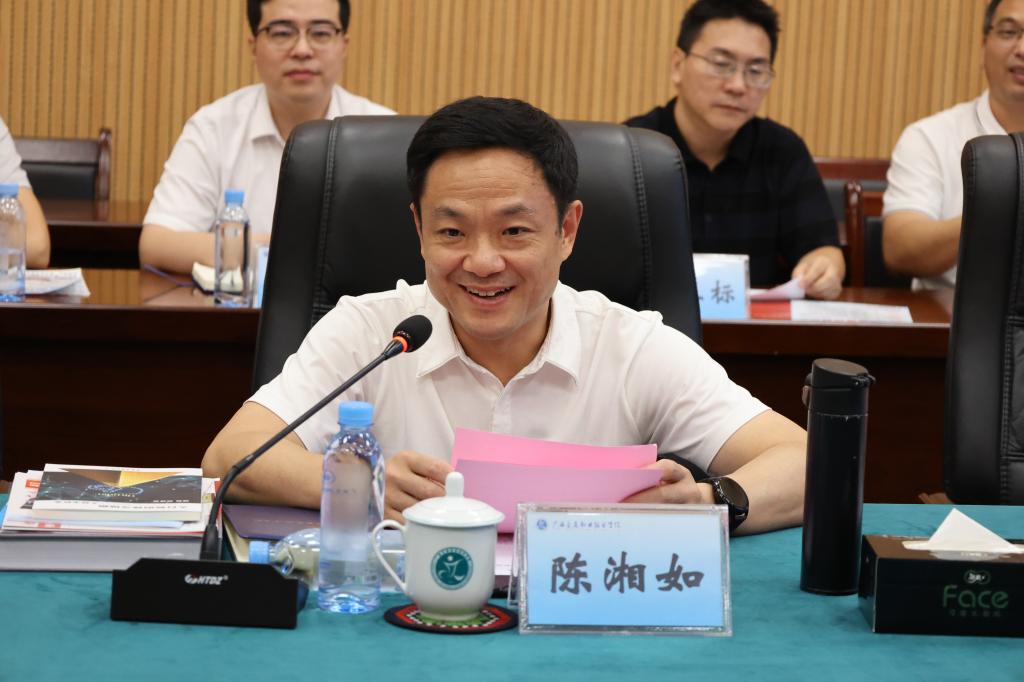 陈谨副主任介绍了来访的目的,对陈湘如书记的接待表示了感谢,希望陆川县的各企业能与学校就科研合作、产教融合、人才培养达成共识,同时建议双方能够深化、巩固目前合作取得的成果,加强沟通交流。