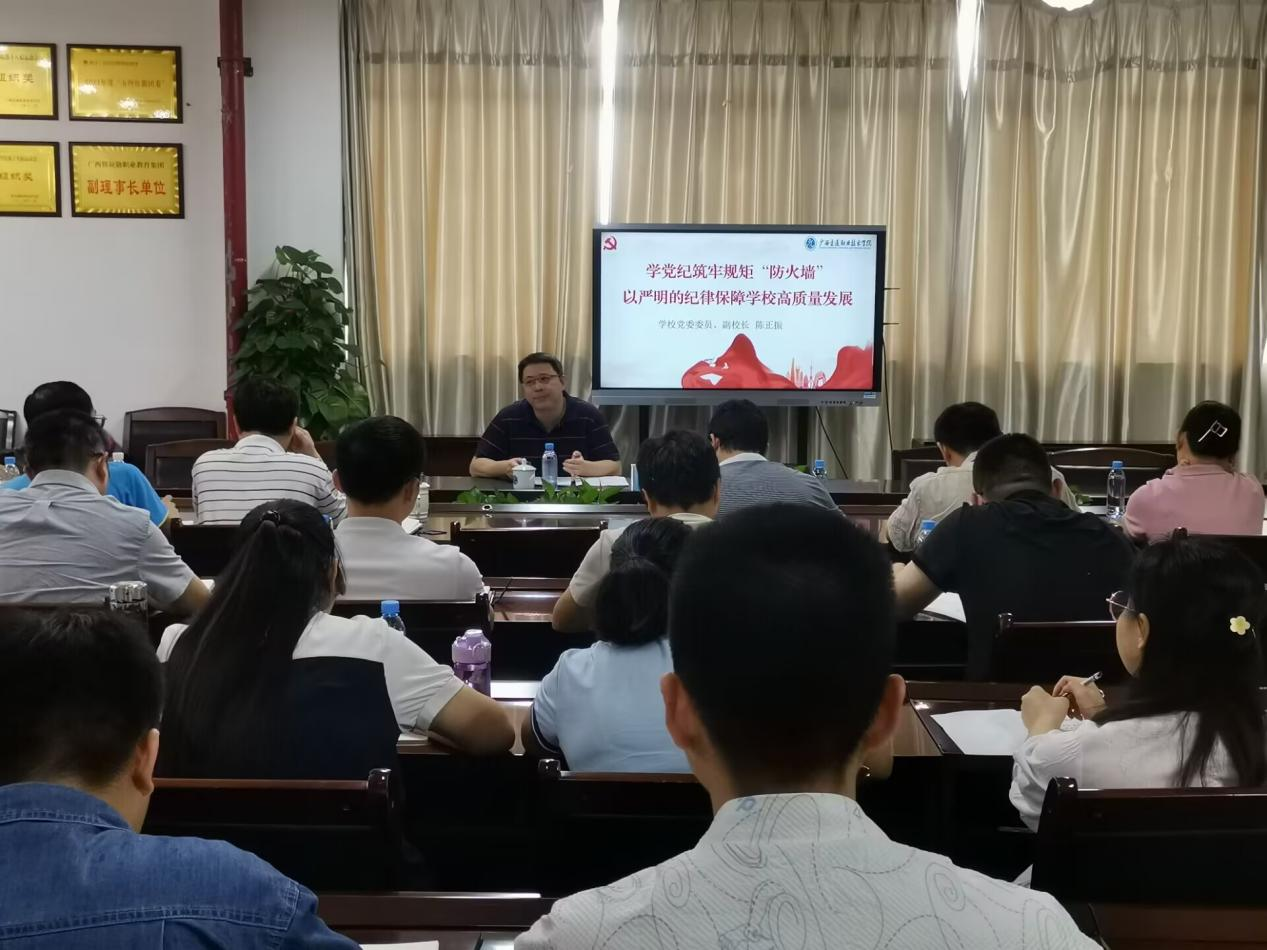 学校党委委员、副校长陈正振在管理楼316会议室讲授党纪学习教育专题党课
