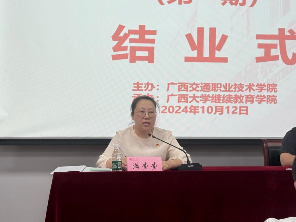 结业式上,学校党委委员、组织部、统战部部长满莹莹在总结讲话中要求,全体党务干部要始终保持信任,相信组织的培养和党员群众的选择,坚守岗位责任,履行岗位义务。要坚持系统的思维,把学校党建与社会服务结合起来,把个人成长和工作统筹起来,进一步提高基层党组织的战斗力、凝聚力、向心力。要坚守底线思维,坚持问题导向,对照学校反馈党支部建设存在的问题,抓整改、提质效,不断加强内涵建设,切实为学校高质量发展贡献新力量、展现新担当新作为。