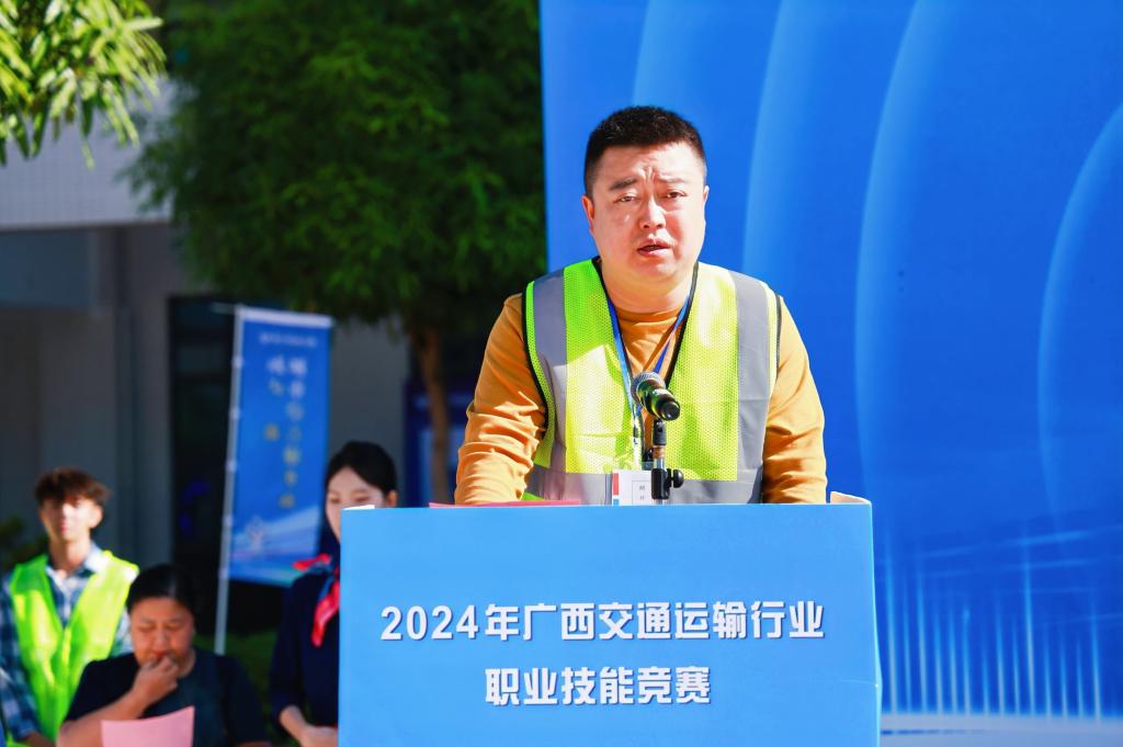 自治区交通运输厅陆晓明副厅长在会上讲话中表示,本次技能竞赛是广西交通运输行业深入贯彻落实习近平总书记关于广西工作论述的重要要求和关于技能人才工作重要指示的具体行动,是深化交通运输产业工人队伍改革建设工作、抒写向海图强壮美画卷的生动实践,也是广大技能人才展示精湛技能、相互切磋技艺的重要平台,对壮大产业工人队伍、推动经济社会发展具有积极作用。他强调要以高质量办赛和高水平参赛掀起劳动和技能竞赛热潮,为奋力谱写中国式现代化广西篇章提供坚实有力的人才支撑,为高水平共建西部陆海新通道、推进“一区两地一园一通道”建设作出更大贡献。