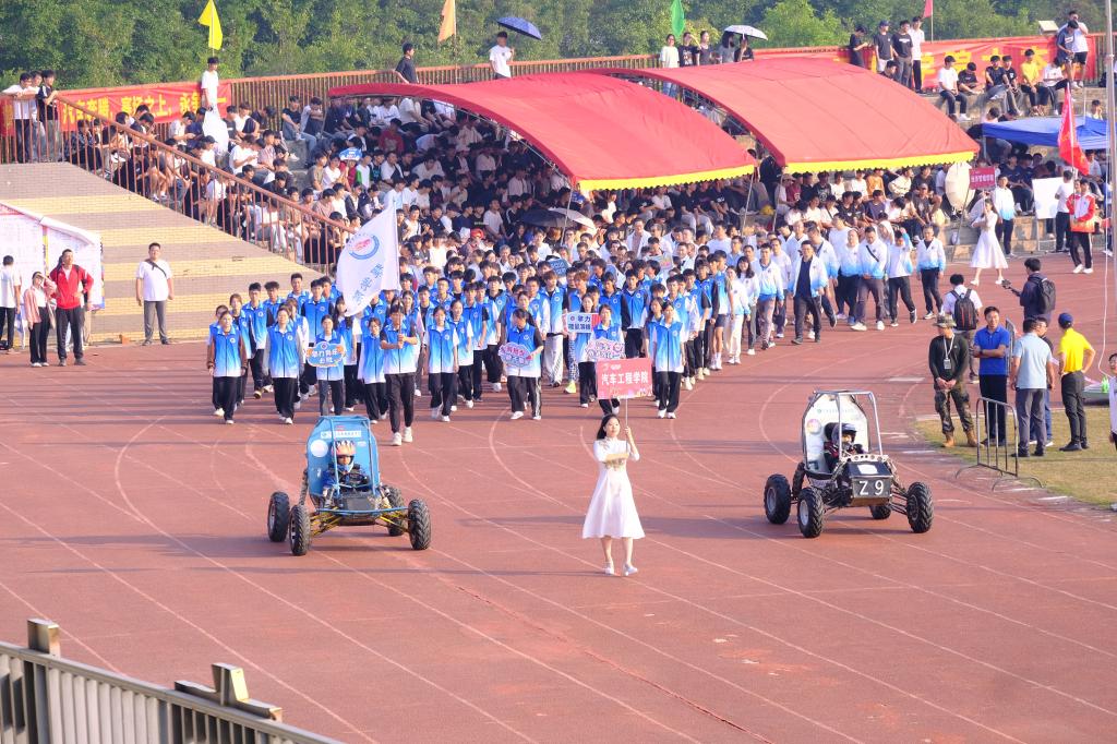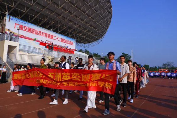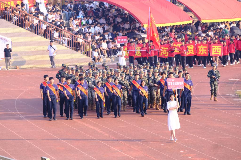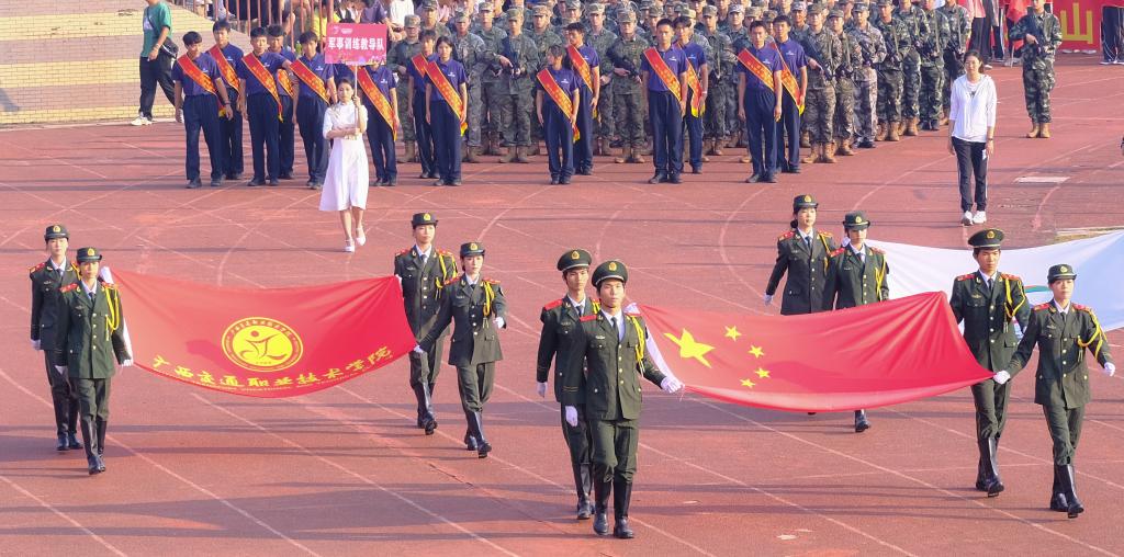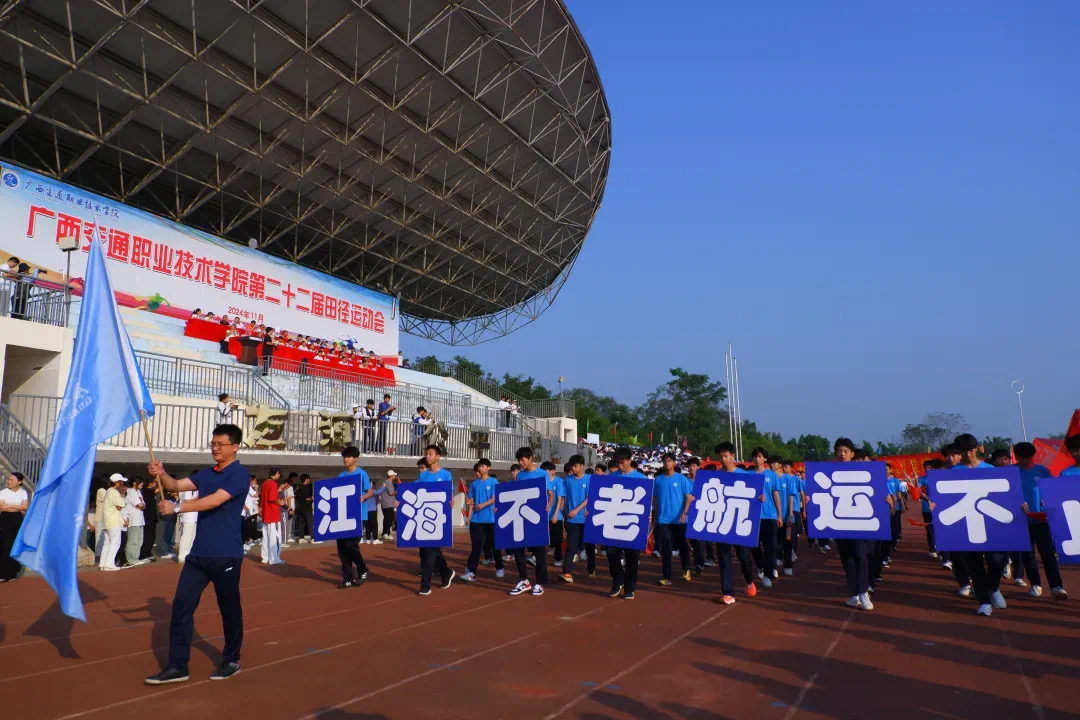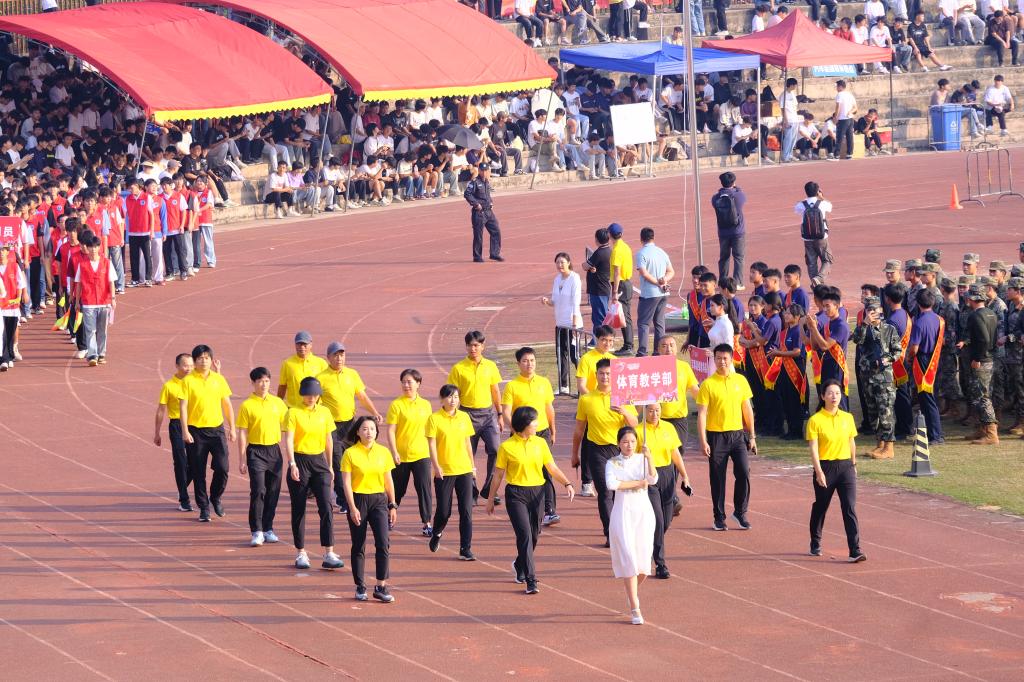 激昂的乐声中,气宇轩昂、英姿焕发的国旗护卫队率先出场,校徽、会标、会旗等紧随其后。他们昂首挺胸,步伐坚定,传递着超越自我、奋勇拼搏的精神。