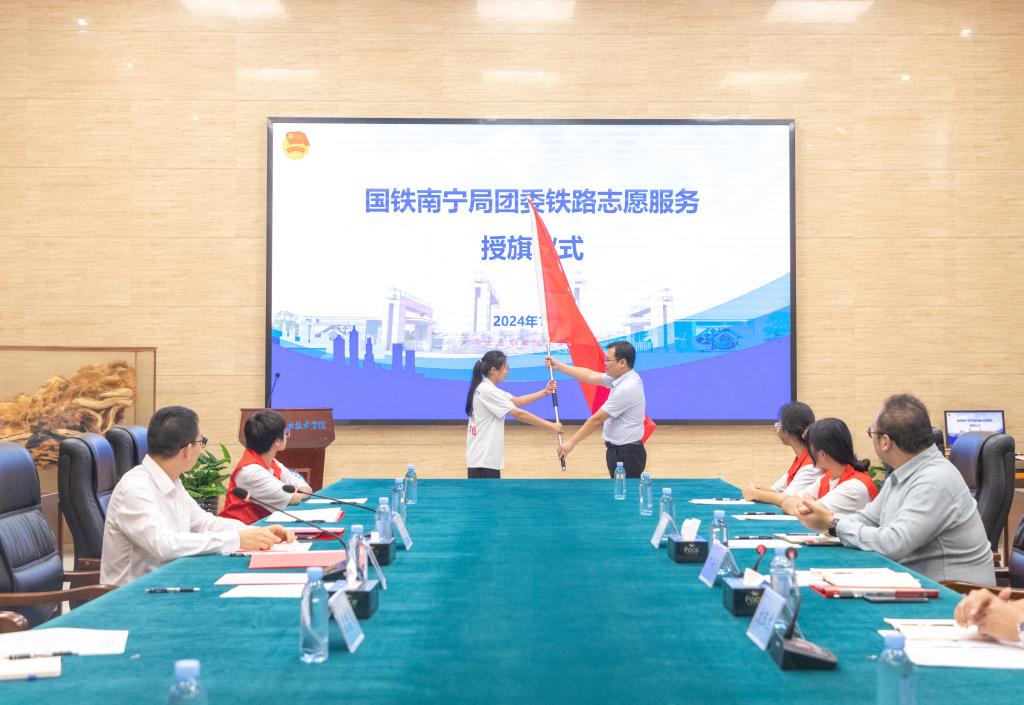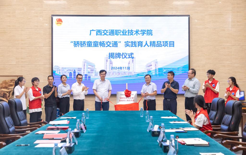 会上,学校党委副书记陈海峰与南宁铁路局团委负责人邓开托为校企双方共同培育创建的“骄骄童童畅交通”实践育人精品项目揭牌。随后依次进行了“扬帆计划”校企合作签约仪式、铁路志愿服务授旗仪式、志愿者代表发言等环节。