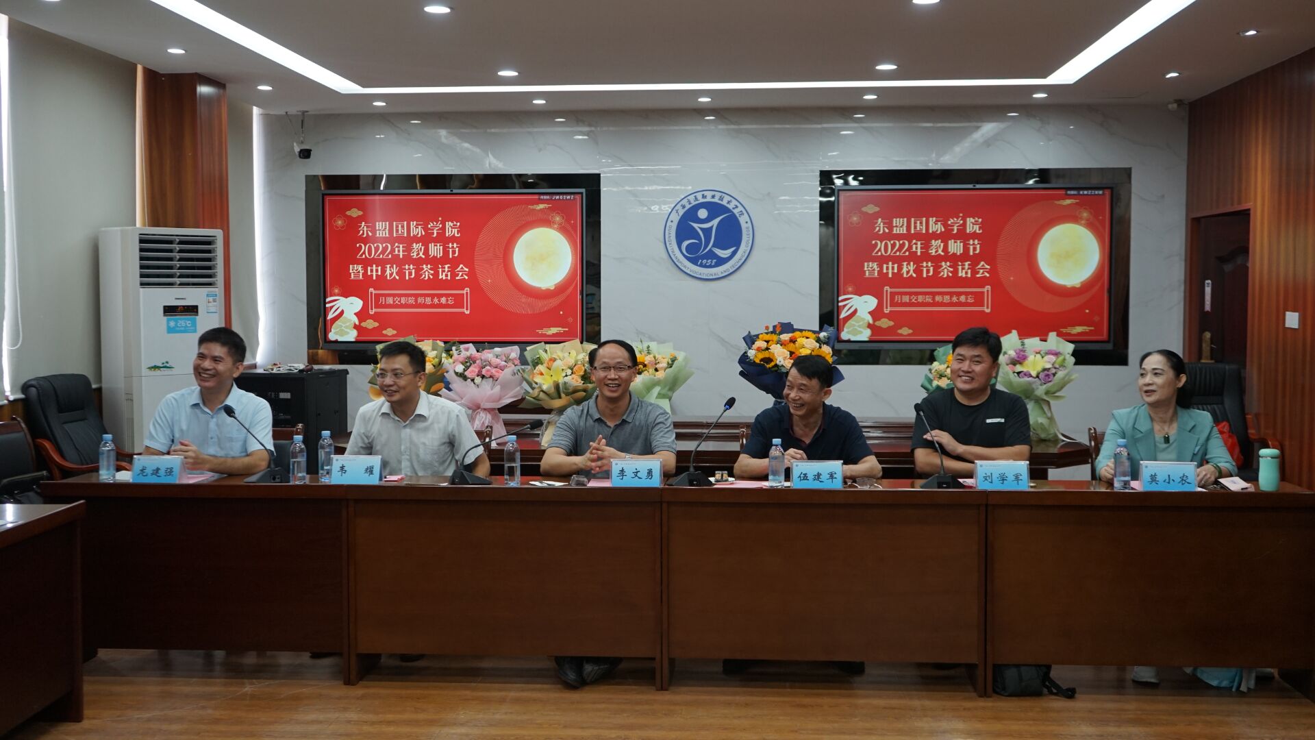 (东盟国际学院 讯)在第38个教师节到来之际,9月9日下午,为弘扬尊师重道的优良学风,同时学习和传播中国文化,我院留学生组织举办了“月圆交职院 师恩永难忘”主题茶话会,向学校领导、老师表达感谢和问候。校长李文勇、东盟国际学院院长莫小农、校党委办公室主任韦耀、学生工作处副处长龙建强、汽车工程学院院长刘学军、部分授课教师代表、东盟国际学院全体教职工、全体留学生参加了本次茶话会。