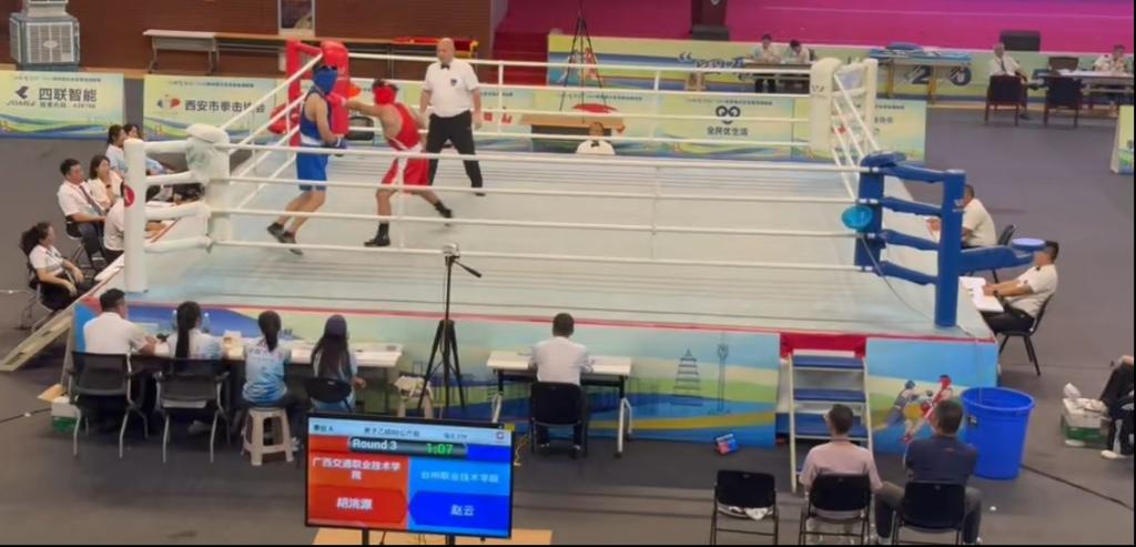 本次比赛竞争激烈,全国高校拳击高手云集。胡洮源和韦灵东两位同学在赛前进行了长达数月的系统训练,从体能、技术到战术均做了充分准备。他们在赛场上敢打敢拼,以出色的竞技水平和顽强的意志品质赢得了对手的尊重和裁判的认可,充分展现了交院学子“敢闯敢拼、永不言弃”的体育精神。