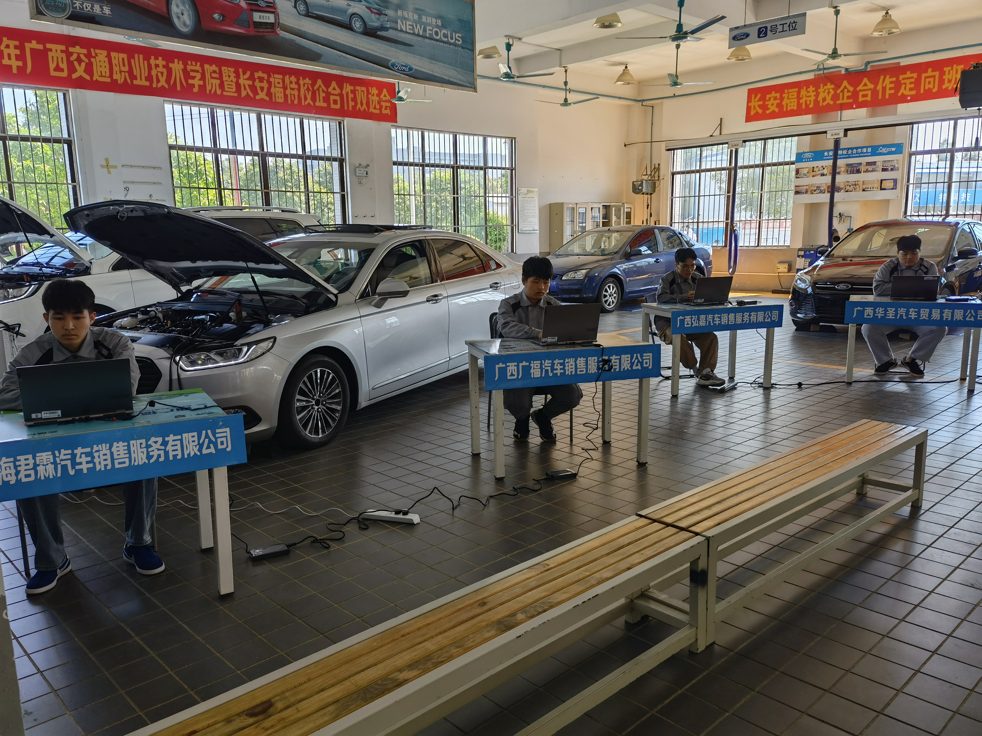 据悉,本次共有来自长安福特汽车品牌11家区内外企业参加,提供了100多个包括机电维修、销售顾问、服务接待、钣金、喷漆等在内的急需就业实习岗位,还有汽车主播、新媒体运营等新兴港岗位。招聘会经过前期宣传以及收集学生面试意向,当天共有100多名长安福特订单班与非订单班学生踊跃参与。学生穿戴整齐,精神抖擞,面试时沉着冷静,调理清晰地介绍自己学习情况和优势特长。最终有60多名学生现场与企业达成初步的意向。企业反馈:这样的专场招聘会很好,可以招到非常合适的人才,学生对于品牌知识和技能都很扎实,到企业后,很快就可以开展工作。