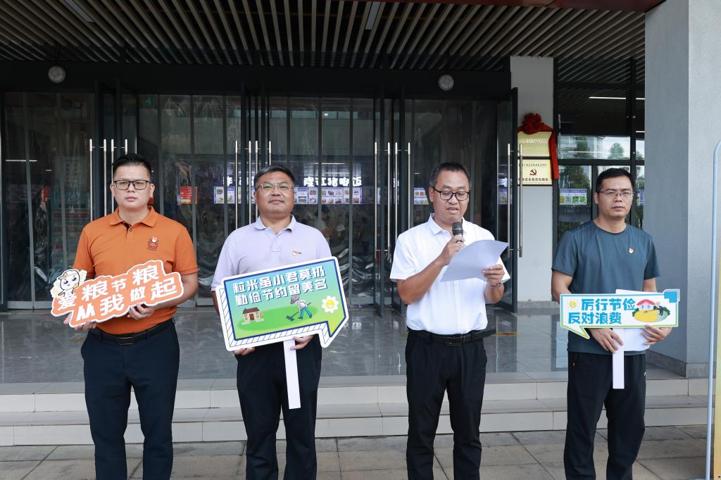 当日上午11时,活动启动仪式在昆仑校区东区食堂率先拉开帷幕。后勤中心主任助理温岳鹏老师现场宣读《制止餐饮浪费倡议书》,后勤中心负责人邱文成老师围绕活动意义与未来实践提出三点希望:一是希望全体党员以此次活动为契机,发挥先锋模范作用,将节粮理念融入工作与生活,带头践行“光盘行动”,成为校园节约风尚的引领者;二是希望食堂团队从源头把控粮食损耗,优化食材采购、存储与加工流程,在保障美食多样性的同时减少浪费,让“每一粒米都物尽其用”;三是希望广大师生将活动中的感悟转化为长期习惯,不仅在食堂做到按需取餐,更能带动家人、朋友共同参与节粮行动,让节约粮食成为社会共识。