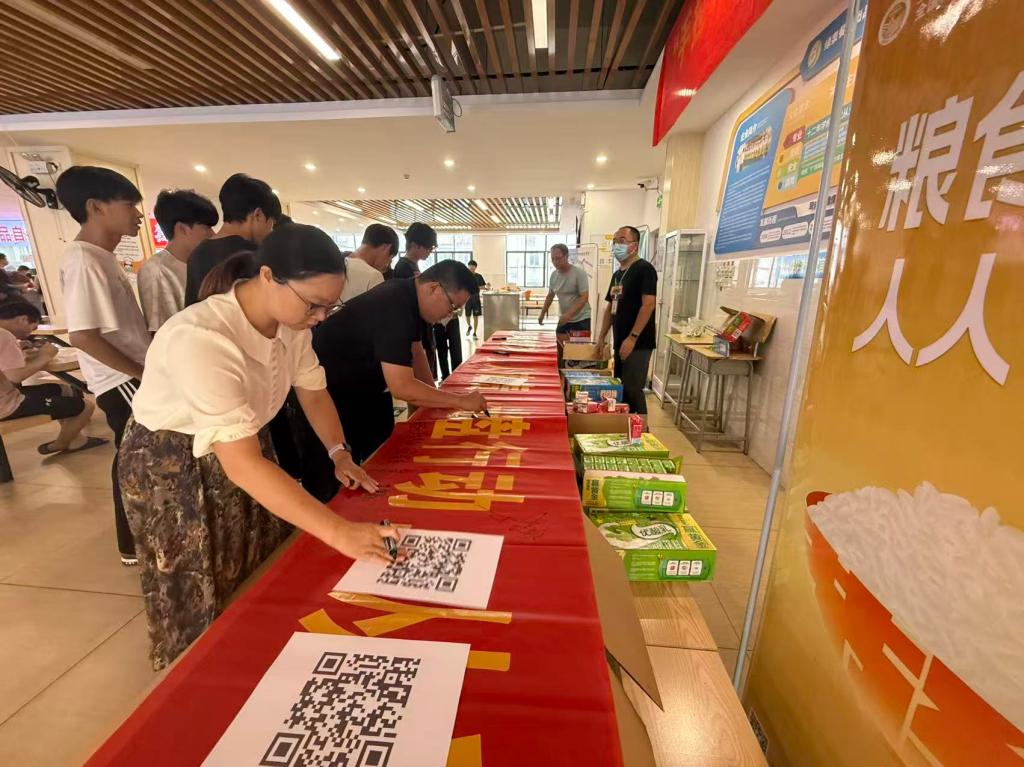 在活动现场,工作人员通过发放节粮宣传折页、摆放节粮主题门型展板、循环播放节粮宣传片等方式,以图文并茂、影像结合的形式,直观呈现了全球粮食短缺的严峻现状,也展示了我国在粮食减损降耗工作中取得的显著成效。尤为特别的是,学生代表在工作人员的引导下走进食堂后厨,亲身参与洗菜、切菜、煮饭等操作流程,近距离感受“一粒米、一棵菜”从食材到菜品背后复杂的工序与大量的人力投入。“原来一棵青菜要经过挑选、清洗、切配等多道步骤才能端上餐桌,以后肯定不会随便剩饭了。”路桥学院梁同学在体验结束后由衷感慨,不少参与体验的同学也纷纷表示,今后取餐时会主动调整分量,切实避免粮食浪费。