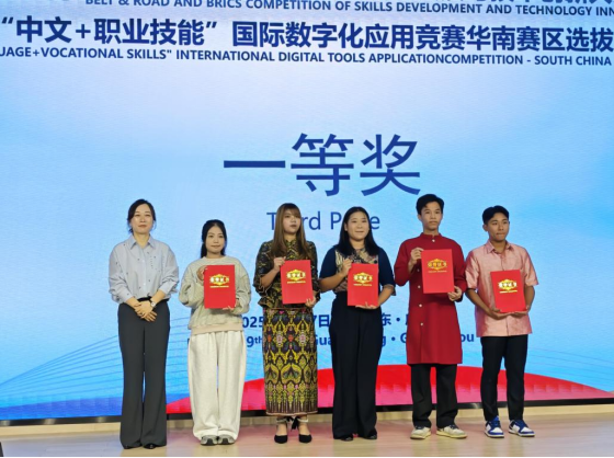 (东盟国际学院 讯 严丽、文静琦/文)11月9日,2025一带一路暨金砖国家技能发展与技术创新大赛之“中文+职业技能”国际数字化应用竞赛华南赛区选拔赛在广州落下帷幕。PP电子国际学生代表队凭借卓越表现,一举斩获一等奖5项、二等奖2项、三等奖1项,展现了PP电子国际化培养的扎实成果和国际学生出色的综合素养。