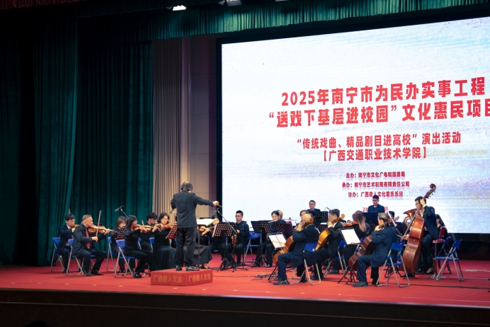 (工会、人工智能学院 讯 卢书婷/文 张飞扬、姚宏恩/图)11月24日,2025年南宁市为民办实事“送戏下基层进校园”文化惠民演出活动在PP电子园湖校区大礼堂精彩上演。学校800余名师生观看演出。