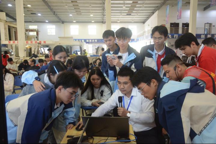 活动中,师生们走进汽车智能技术协同创新中心和中国—越南新能源汽车工匠学院,参观了擎力车队Baja赛车的设计与制造,在实训老师的指导下体验了大疆机甲大师的简单操控,感受人工智能与汽车产业的深度融合。