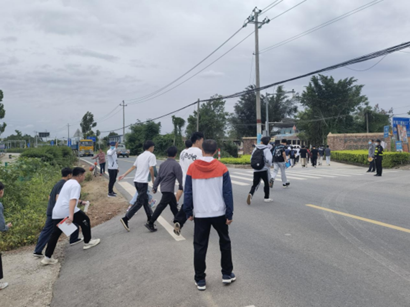 因昆仑校区西区田径场位于校区围墙外,且中间隔着南宁市兴宁区029县道,为防止授课学生随意接触周边商贩或到无证摊点就餐,加大学生行为的约束管理力度,提高学校疫情防控的执行力。体育教学部从4月1日起,每天派专职老师在侧门接、送上课学生。老师们不畏日晒、不怕雨淋、耐心带队,曾忠文主任带头在路口指挥队伍,确保安全。试行一周后,赵海燕老师根据集合慢、过马路时间长、安全性差等现实情况,制定了领路排班表,使上课学生不必集中通过,时间更自由,也减轻了029县道的交通堵塞压力;雨季来临了,程昭云和赵睿在雨中不忘安全,努力疏导学生队伍、在斑马线一左一右当起了交通指挥员,直至最后一名上课的同学安全通过才收队返回课堂,集合点名。