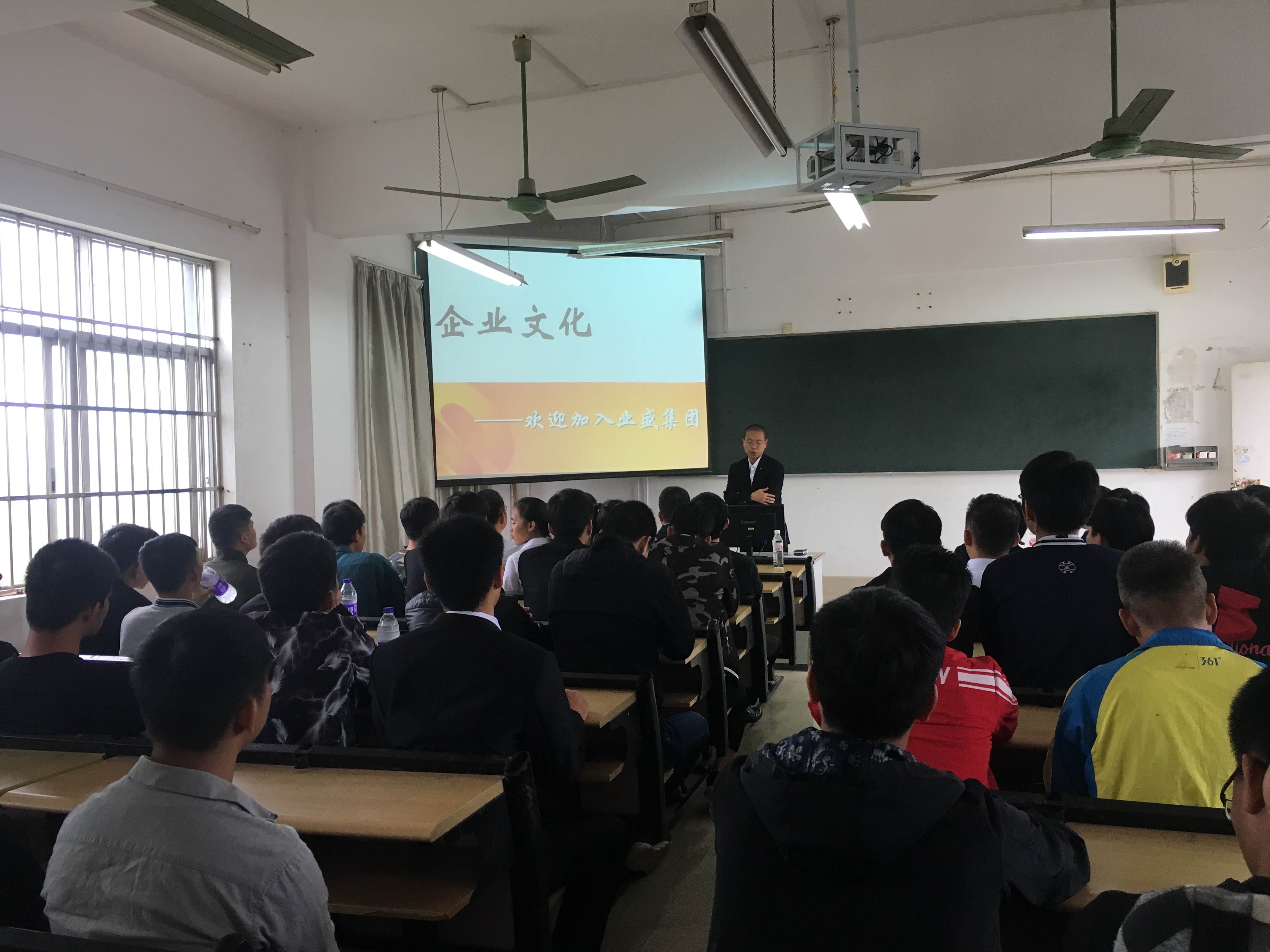 (汽车工程系 讯 吴 丹 梁业灿/文、图) 近日,广西业盛投资集团有限公司到我院汽车工程系召开宣讲招聘会。业盛集团总经理助理党军、业盛集团人事主管等领导以及汽车工程系工程机械教研室的师生参加了招聘宣讲会。