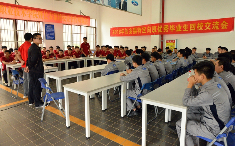 招聘当天,长安福特校企合作定向班优秀毕业生返校与在校学生进行经验交流。优秀毕业生对同学们最关心的面试技巧、顶岗实践过程中的注意事项、今后发展目标等方面的问题都一一进行了解答。