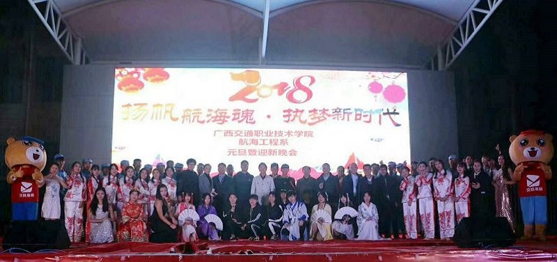 (航海工程系 讯)2017年12月28日,航海工程系2018年元旦暨迎新晚会在广西交通运输学校田径场顺利举行。广西交通运输学校副校长成汉方、黄兆牛以及航海工程系领导和师生600余人现场观看了晚会。