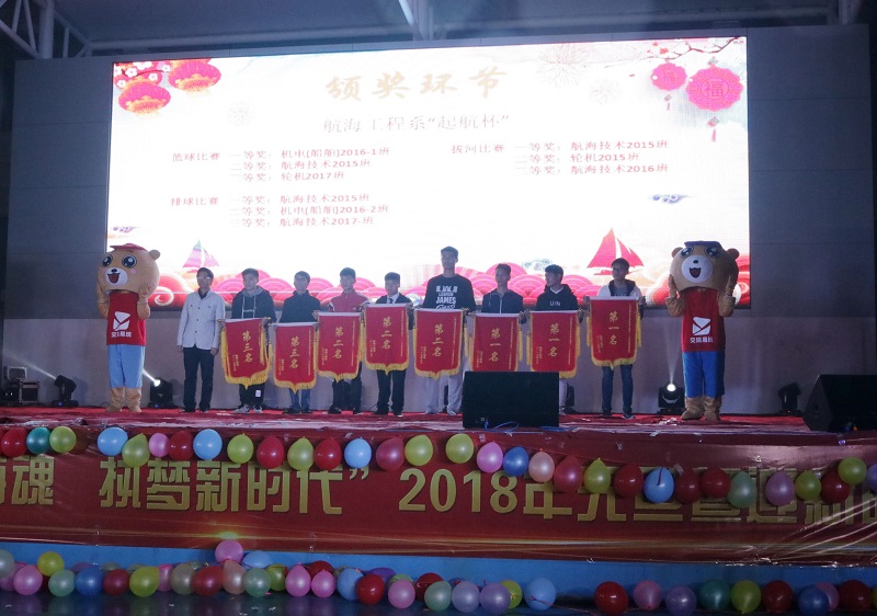 在表彰颁奖环节,广西交通运输学校成汉方副校长、黄兆牛副校长和航海工程系蒋运劲教授分别为航海工程系在学院运动会、宿舍文化建设、启航杯获奖的集体和个人进行颁奖,鼓励他们争先创优,不忘初心,砥砺奋进。
