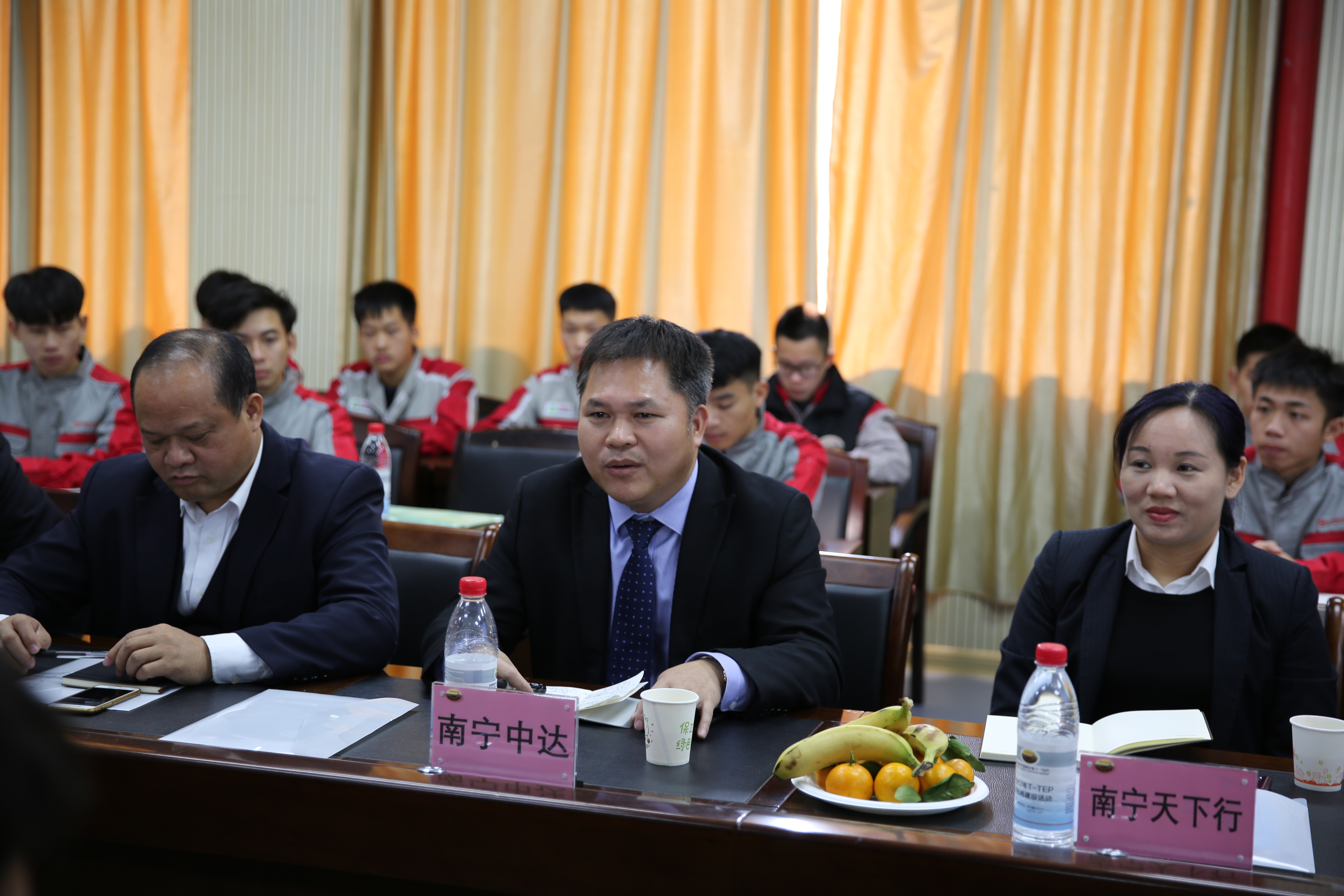 各企业代表、汽车工程系领导和教师、丰田订单班任课教师及部分学生代表开展积极研讨。各参会代表对增加丰田汽车品牌在学生中的影响力提出了宝贵的建议。校企双方在提高丰田班学生待遇、支持学校丰田班品牌建设活动、加强学生技能认证、派遣技师到校进行丰田班学生结业考试等方面达成了共识。