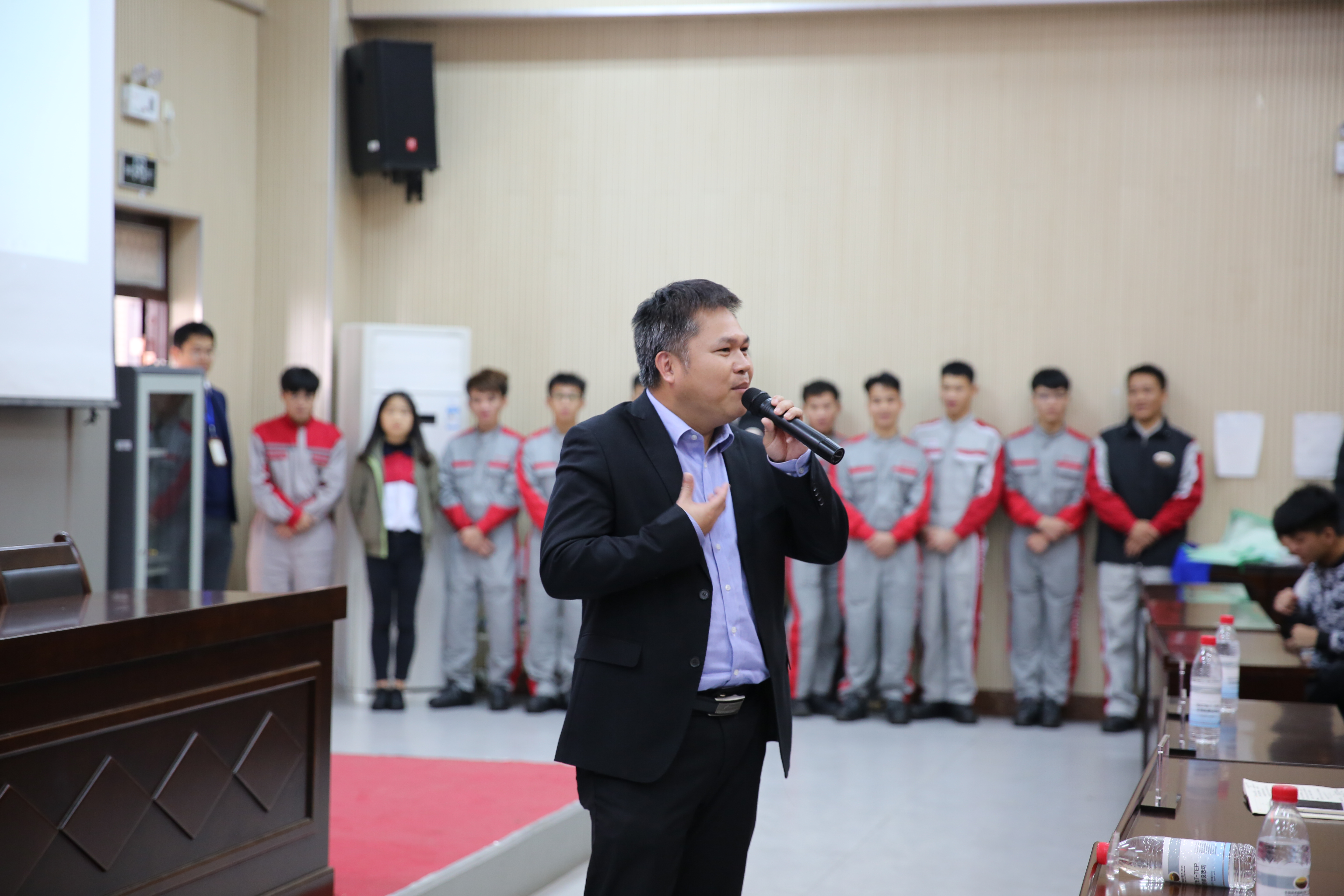 同时,我院汽车工程系280名学生代表与丰田经销店代表在综合楼C2多功能厅开展交流活动。部分丰田店企业代表分享了自己在丰田企业工作经历及自己在职业上的成功经验,为学生的职业生涯规划提供了参考。