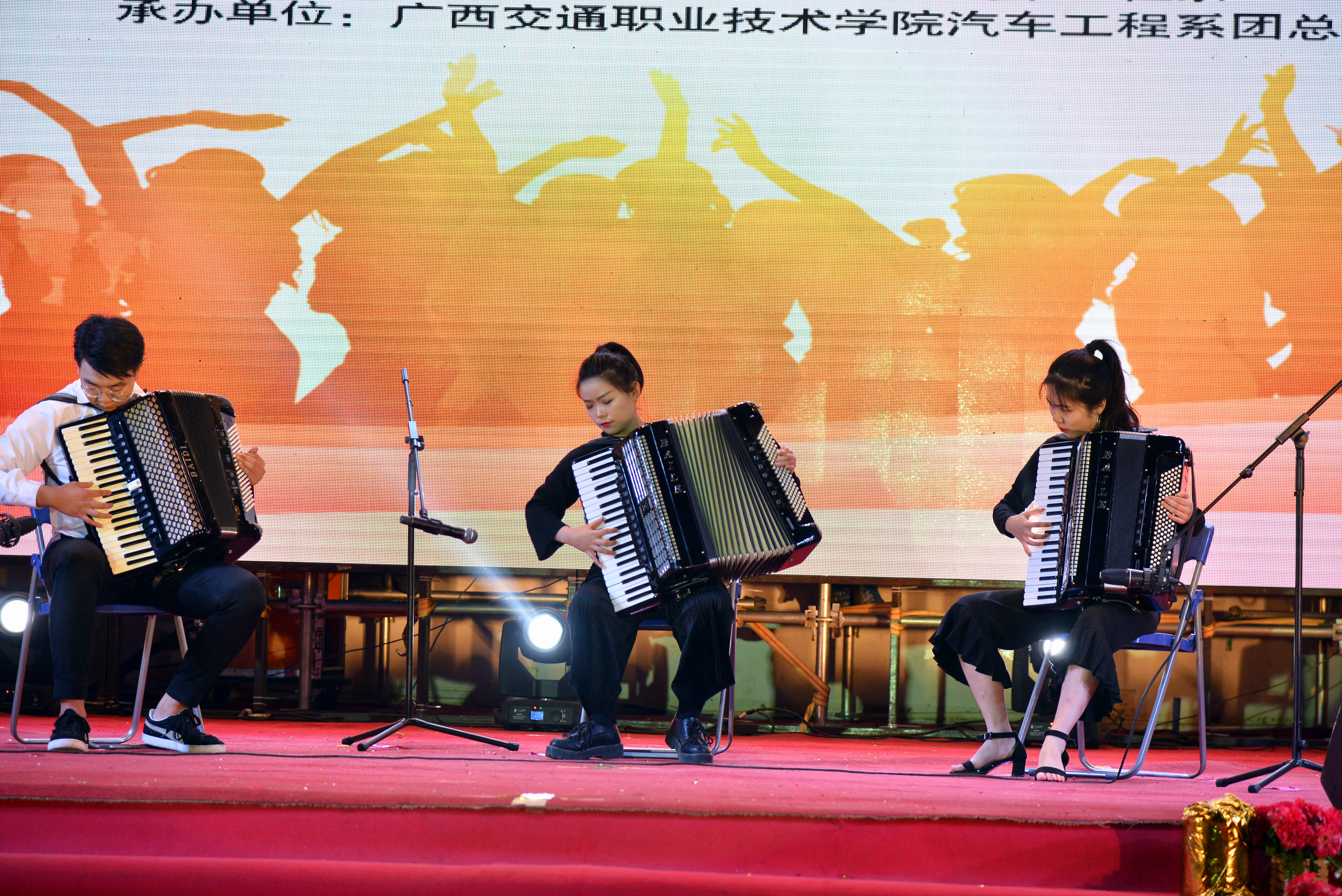 晚会以热舞表演开场,充分调动了现场师生的热情。整台晚会分为“榜样•让青春充满能量”、“激情•让校园充满活力”、“合作•让未来更加美好”共三个篇章。晚会节目有舞蹈、歌唱、小品等多种形式,精彩纷呈的节目表演展现了汽车工程系学子多才多艺的一面。晚会上,视频展示了汽车工程系一年以来在专业建设、社团活动、技能竞赛、校企合作、毕业生祝福等方面内容,充分展示了汽车工程系一年以来在各方面取得的成绩。此外,本次晚会邀请了广西艺术学院学生会代表和通力电梯公司员工进行节目表演。