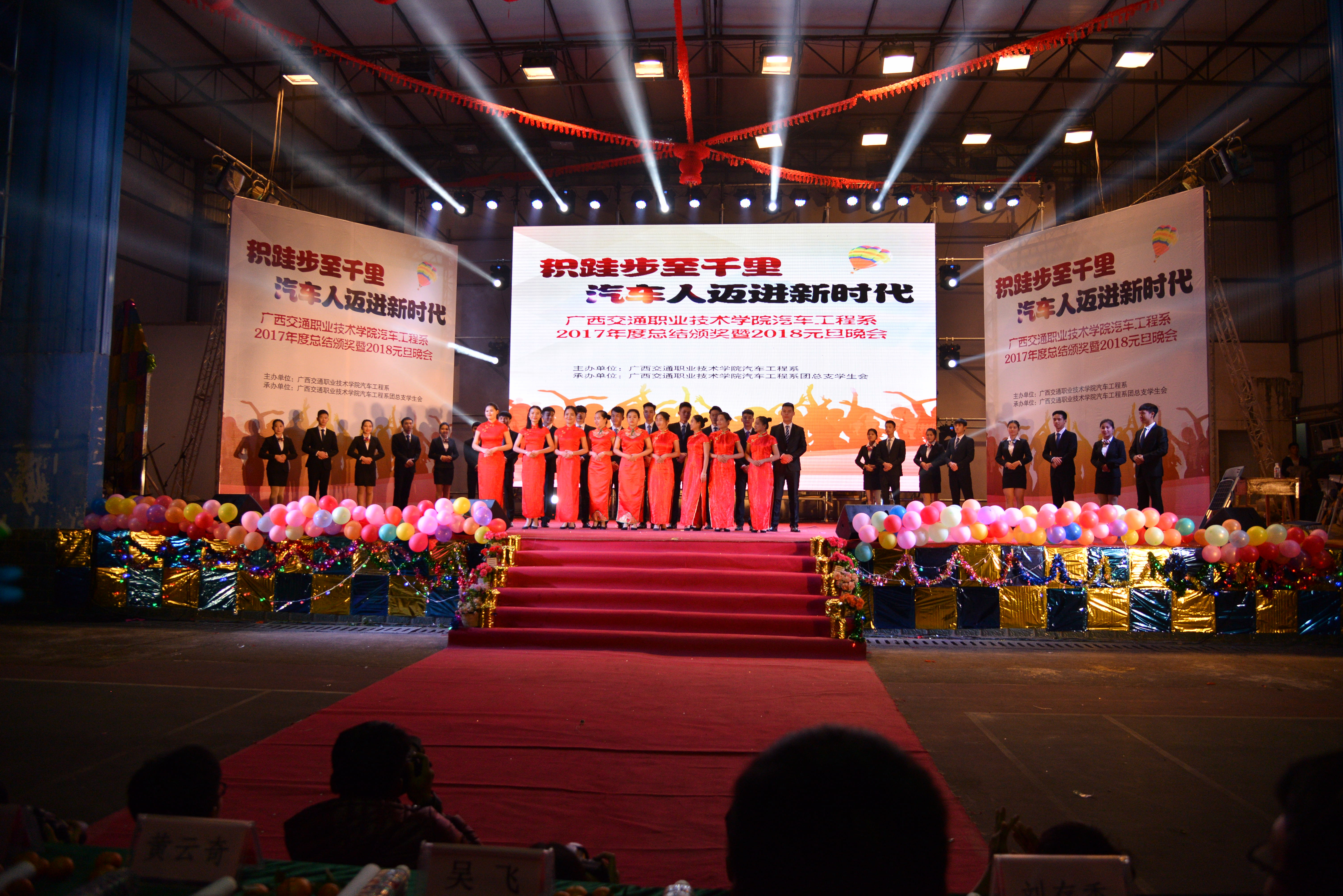人事处、学工处、后勤保卫处、招就处、驾驶学校、对外交流合作处以及各系部领导一起观看了晚会。汽车工程系校企合作企业通力电梯和北部湾财产保险公司领导受邀观看了晚会。