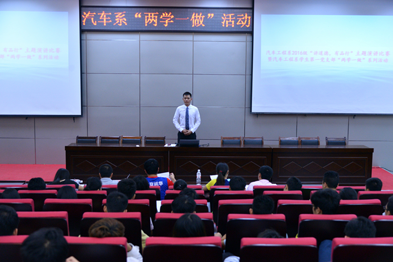 (汽车工程系 吴丹、付漓漓/文 罗杰斌/图)11月17日晚,由汽车工程系学生第一党支部承办的2016级学生“讲道德,有品行”主题演讲比赛,在C2多功能厅进行了决赛。汽车工程系学生党支部全体教师、学生党员、预备党员和入党积极分子参加了本次活动。
