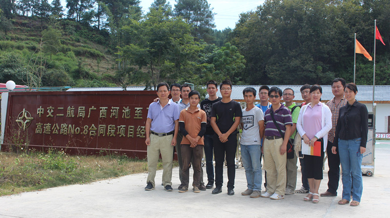 (路桥工程系讯 李振成、杨静/文 张楗/图)10月14-16日,路桥工程系党总支韦秋平书记率领12位专业教师和辅导员奔赴广西长长路桥建设有限公司河百高速项目部、中交二航局河百高速公路项目部、广西路建集团河百高速项目部等地开展走访调研,并看望2014级顶岗实习的学生。