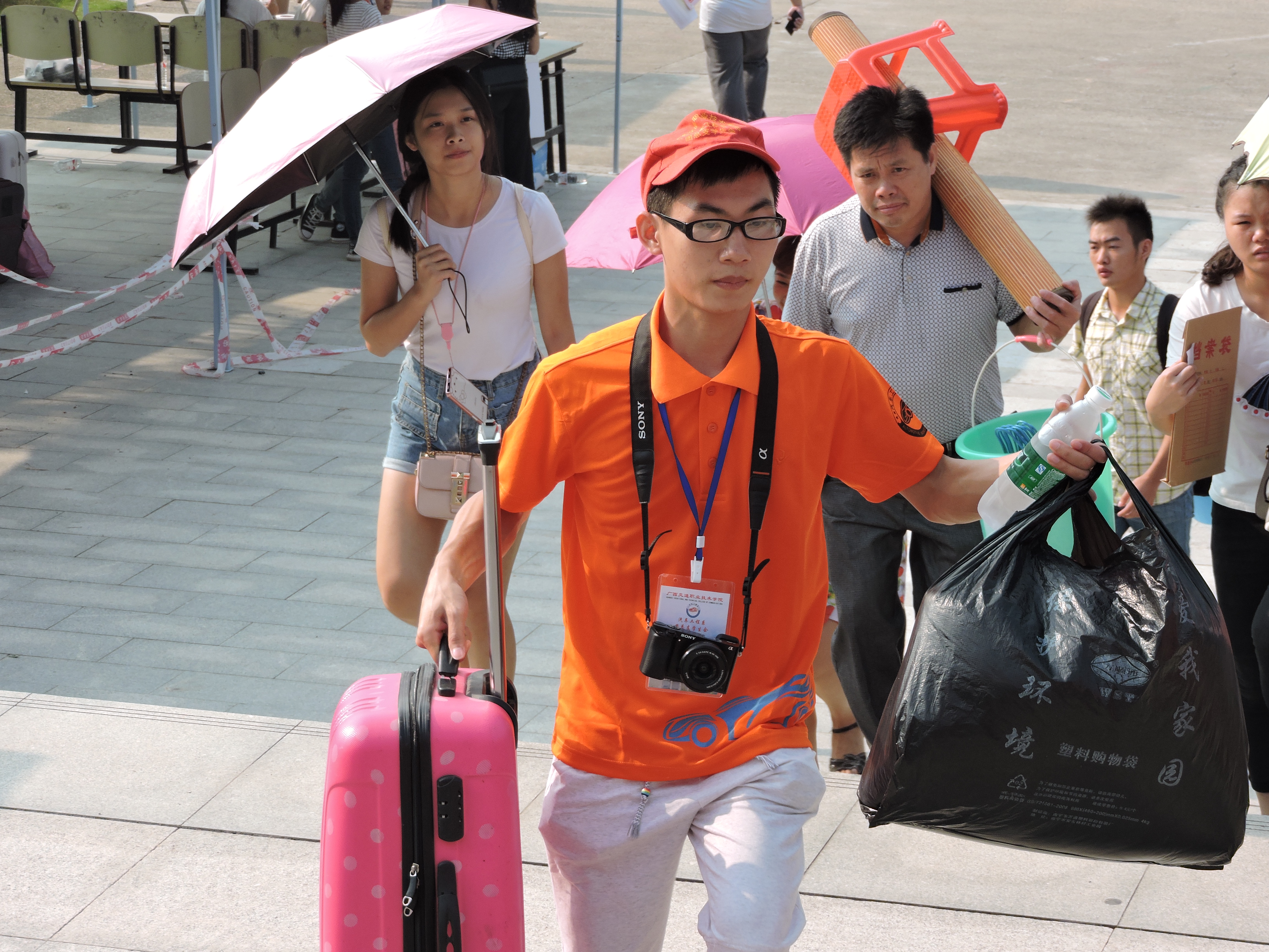 汽车工程系团委学生会成员与志愿者们,用师兄师姐的热情、志愿者的爱心去迎接每一位新同学的到来,校园的每个角落都涌动着他们忙碌的身影,汗流浃背却依然笑脸盈盈。他们引导2016级新生们到注册点办理登记注册手续,帮助新生们搬运行李物品,并耐心解答关于注册、缴费、购置生活用品等疑问。