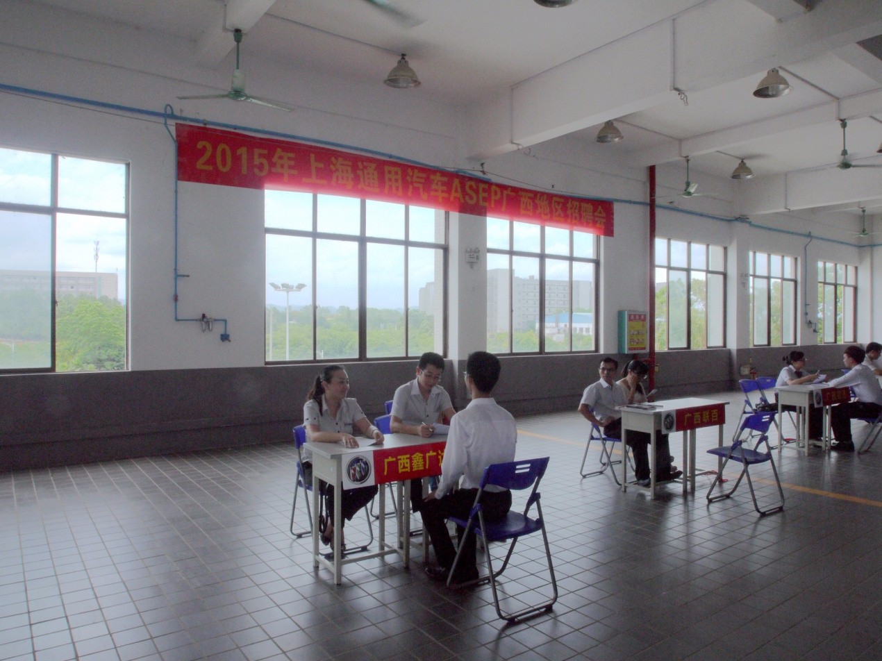 本次招聘会共有来自南宁、桂林、百色、梧州等地的8家别克、雪弗兰经销店到我院招贤纳士,为汽车工程系各专业毕业生提供了近60个就业实习岗位。岗位包括一般维修、销售顾问、服务接待、钣金、喷漆等。在通用班的专场招聘会上,通用班的学员(共22人)与到场的经销商洽谈,全部落实了实习单位。在面向非通用班的招聘会上,汽车工程系2013级汽检、汽电、汽整、汽营和汽运专业100多名学生踊跃应聘,竞争激烈。