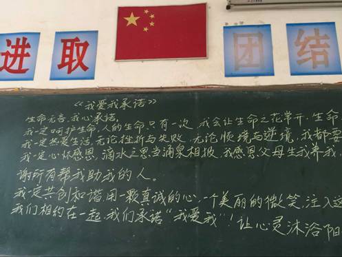 在随后进行的感恩教育中,志愿者们与孩子们一起深情地诵读了《我爱我承诺》,让孩子们学会心怀感恩,鼓励在求学的路上曲折前行的孩子们,不论遇到怎样的风雨挫折,只要牢记着珍爱自己,奋力前行,对未来充满信心。