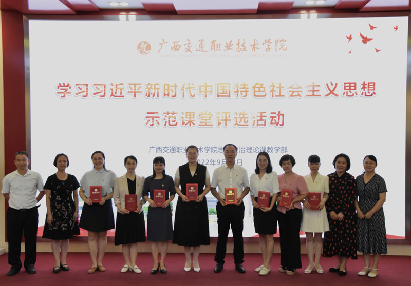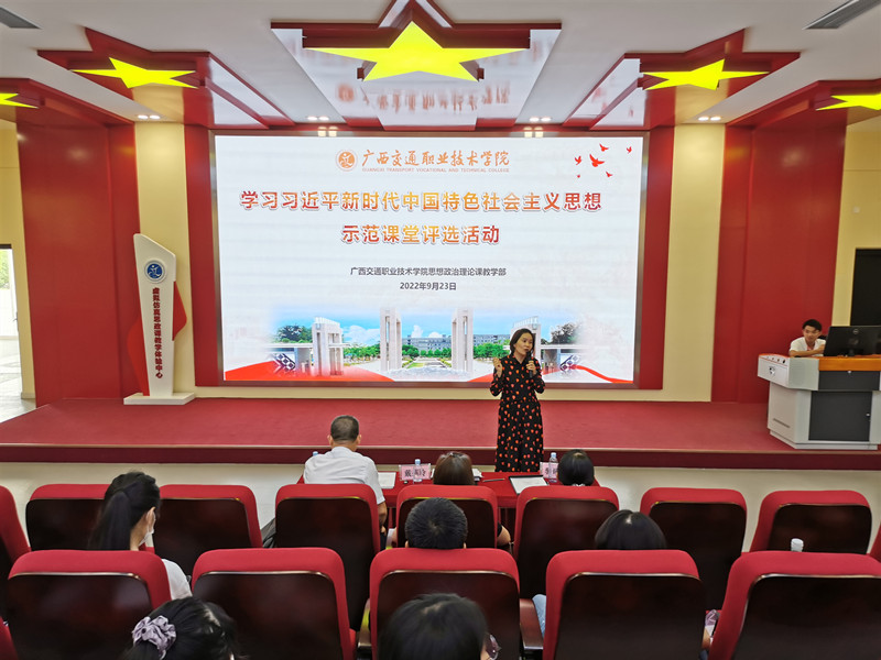 (思政部 讯 吴爱鲜、吴长苏、朱青穗/文 大学生马克思主义学社 甘援旺/图)为深入学习贯彻习近平新时代中国特色社会主义思想,进一步推进习近平新时代中国特色社会主义思想进教材、进课堂、进头脑,不断提升思政课教学质量和水平,9月23日下午,学校思想政治理论课教学部在昆仑校区虚拟仿真思政课教学体验中心举办2022年学习习近平新时代中国特色社会主义思想示范课堂评选活动,并特别邀请广西水利电力职业技术学院江颉教授、广西卫生职业技术学院戴燕玲教授和南宁职业技术学院骆昭平教授作为专家评委,思政部全体教师参加了此次活动。