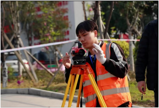 本次《工程测量》赛项竞赛分为二等水准测量、一级导线测量、1:500数字测图三个项目。比赛中,参赛选手沉着应对,依规操作,通过规范、协调、快速、正确地观测记录,进行数据处理,成果计算,以极高的专业素养和扎实的实地操作能力,一路披荆斩棘,最终荣获《工程测量》赛项一等奖。
