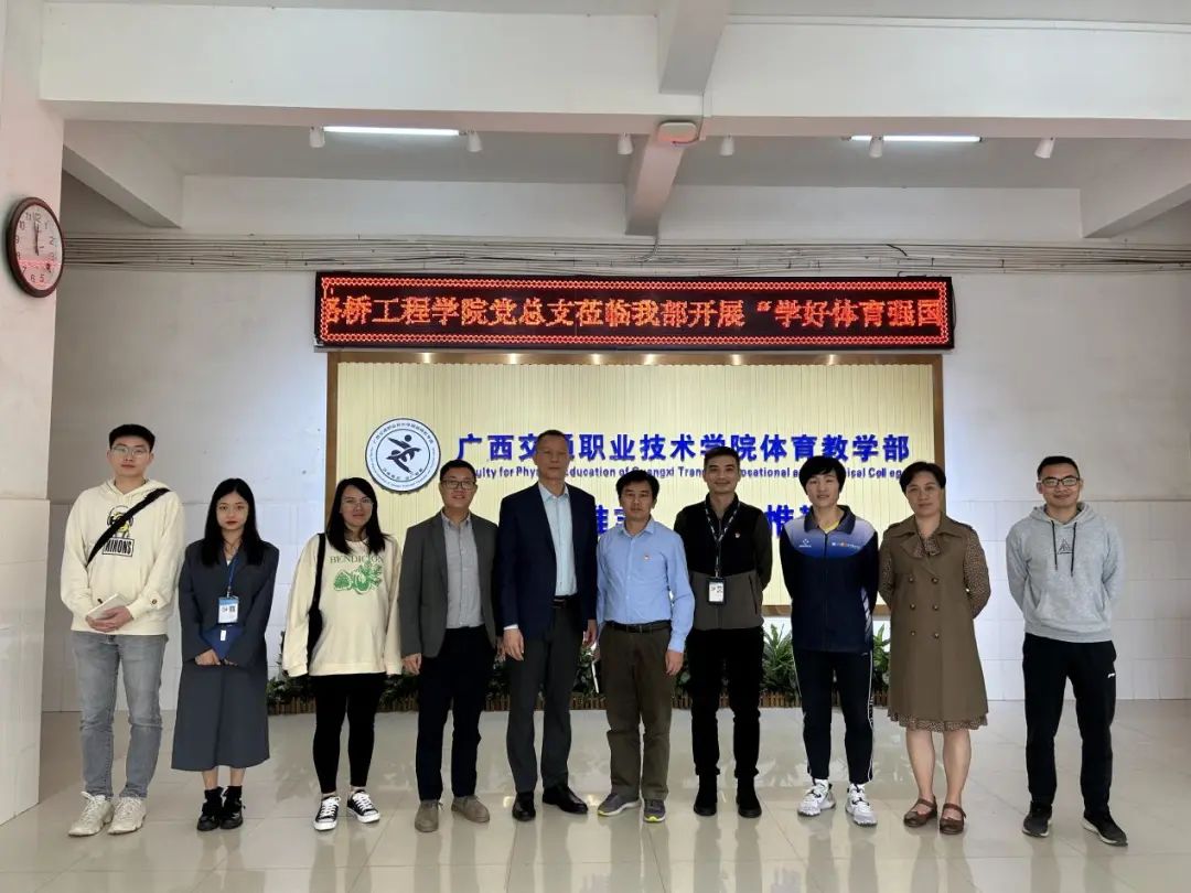 为进一步学习贯彻党的二十大精神和体育强国、交通强国相关精神,做强我院“三全育人”各项工作。3月17日上午,路桥工程学院党总支李振成副书记率教工党支部和学生党支部代表前往体育教学部党支部开展“学好体育强国精神·树好开路先锋旗帜”主题党日活动。体育教学部主任曾忠文教授,党总支书记莫沉、学院教学办、学工办、团委和各年级辅导员代表参加了活动。