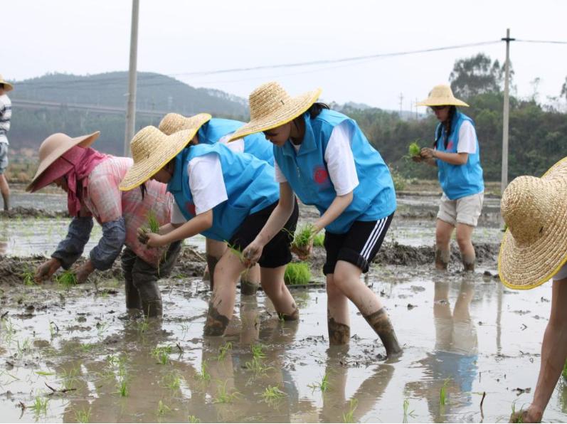 全体师生深入田间,切身体会插秧、抛秧,识别和运用基础农具开展体验式耕种。学院市场营销专业和商务管理专业同学充分发挥专业所长,开展同步直播,累计约2300人次线上观看,收获上万次点赞及上百条评论。