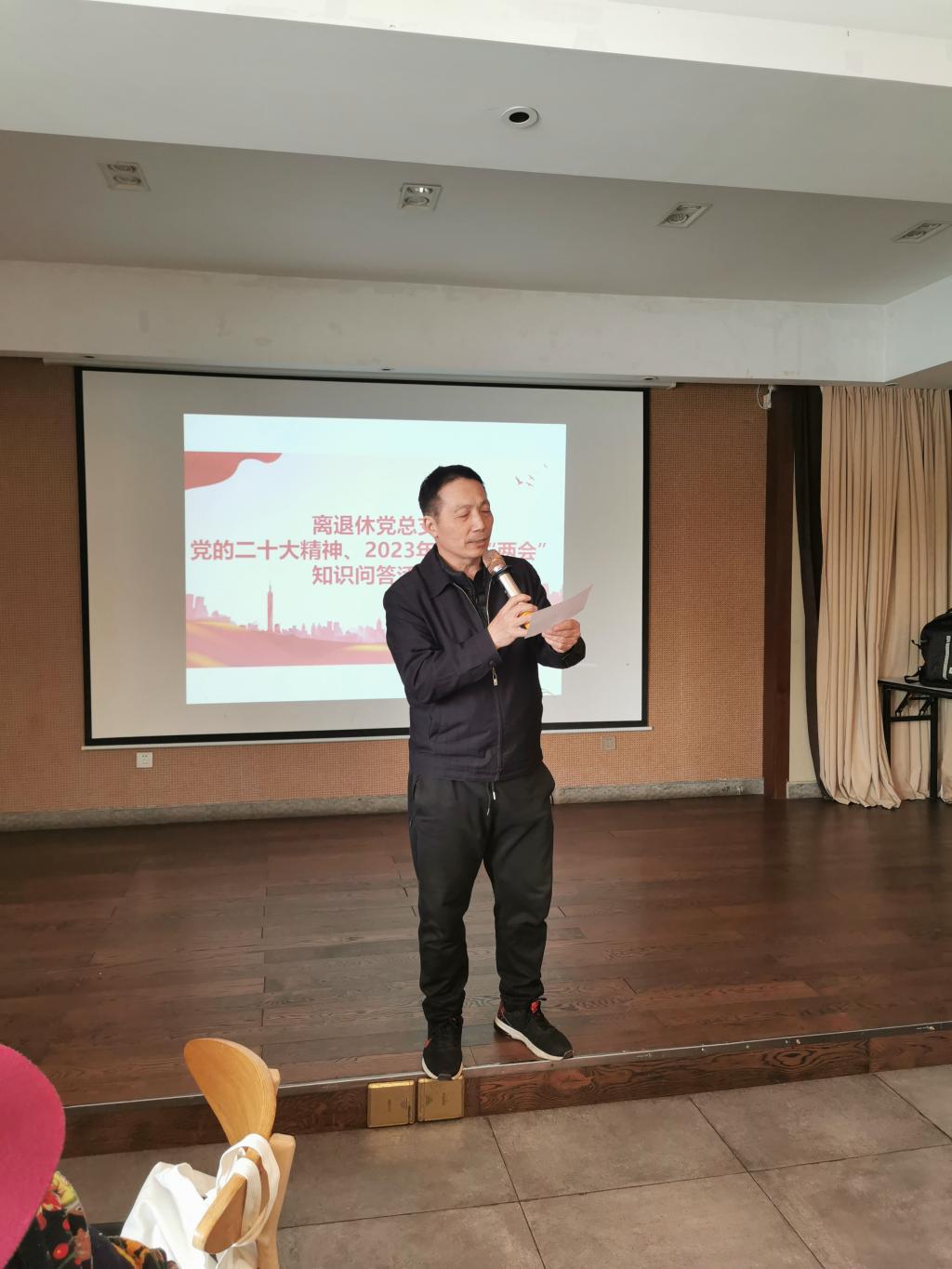 “这个我懂,我来”;“这里这里”;“还有没有题,我们还没得答呢”。3月27日上午,离退休老同志在五合德福山庄举行了别开生面的党的二十大精神、全国“两会”知识问答,在场的老同志兴致高涨、情绪高昂,大家争先恐后,频频举手,会场处处洋溢着热烈欢乐的气氛,把此次“沐春风,感党恩,享生活”春游活动推向高潮。