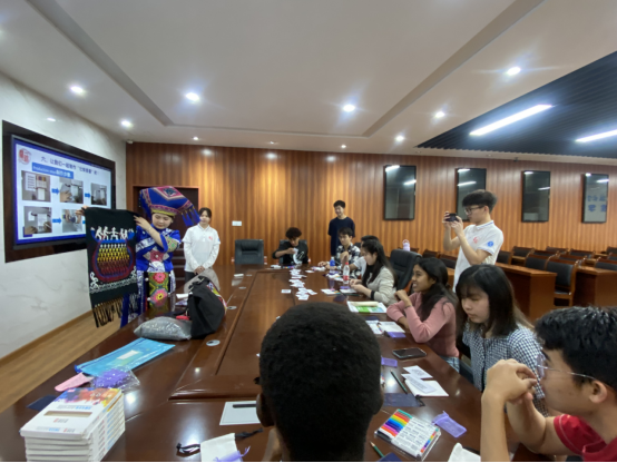 本次活动中,留学生们在了解壮锦文化、学习相关中文表达的同时,还体验实践了壮锦工艺产品制作。留学生们发挥自己的想象力和创造力,将自己的本国文化与广西的壮锦文化相结合,绘制成各种各样的图案,画在香囊上,制成一幅幅美丽的中外文化交融的画卷。在制作的过程中,留学生们与学校骊锦传承服务团师生深入交流,现场欢声笑语不断。