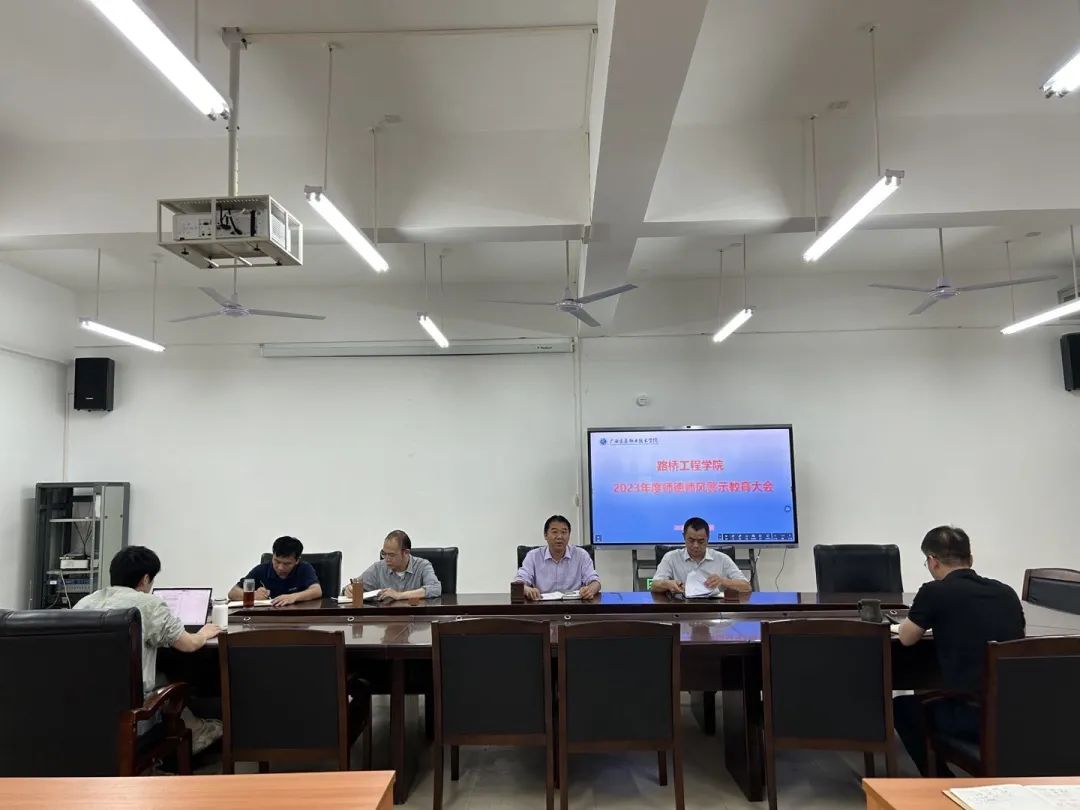 近日,路桥工程学院组织全体教师开展师德师风警示大会,扎实推进学院师德师风建设,强化底线意识,争做有理想信念、有道德情操、有扎实学识、有仁爱之心的“四有”好老师。学院党总支韦秋平书记,覃峰副院长,蔡广聪副院长,李振成副书记出席会议,全体教职工参会,会议由莫品疆院长主持。