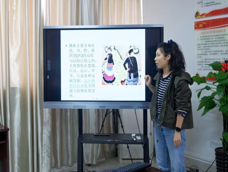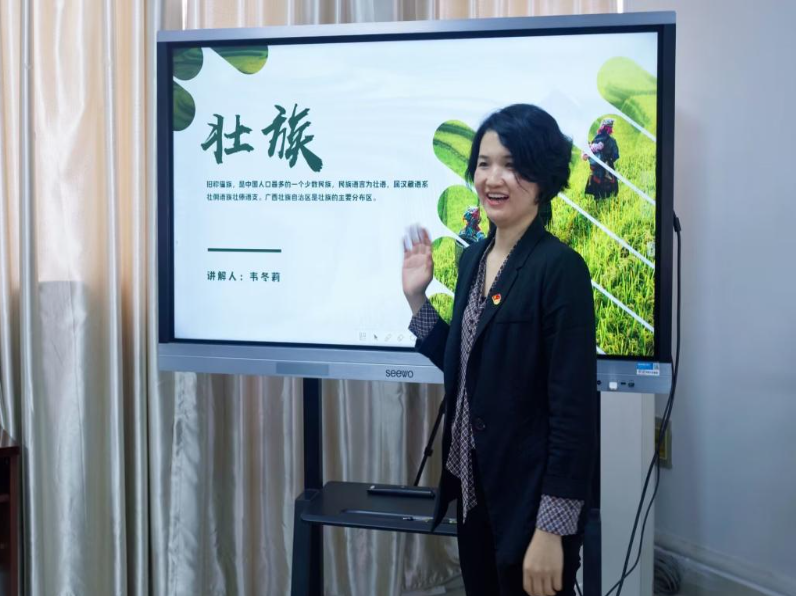 党支部书记袁斌向大家介绍了壮族发展的历史、“壮族三月三”风俗的由来、新时代壮美广西发展取得的突出性成就,引领大家感党恩、听党话、跟党走,铸牢中华民族共同体意识。石莹、庄惠子、韦冬莉老师结合自身少数民族特点,分享了瑶族、彝族、壮族的特点、节日、服饰等,并介绍了在脱贫攻坚和乡村振兴道路上少数民族地区发展的速度、温度、力度和厚度,加深了大家对民族一家亲的认可。党外知识分子纷纷表示,这样的主题党日活动很有意义,既能感知党领导下广西的大发展大跨越,更能体会到各民族大团结大繁荣的时代强音,激励出进一步奋发作为、努力争先、敢闯敢干的经管风采。