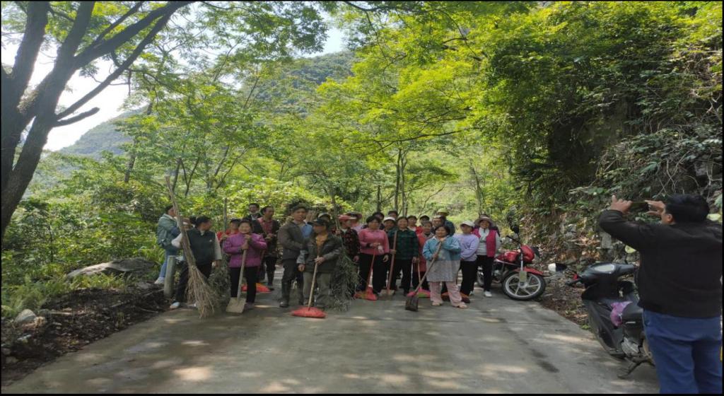 (图二为 参与村容村貌道路卫生打扫活动)