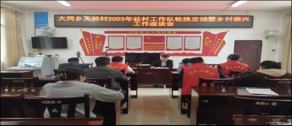 (图七为 参加天然村驻村工作队轮换座谈会)