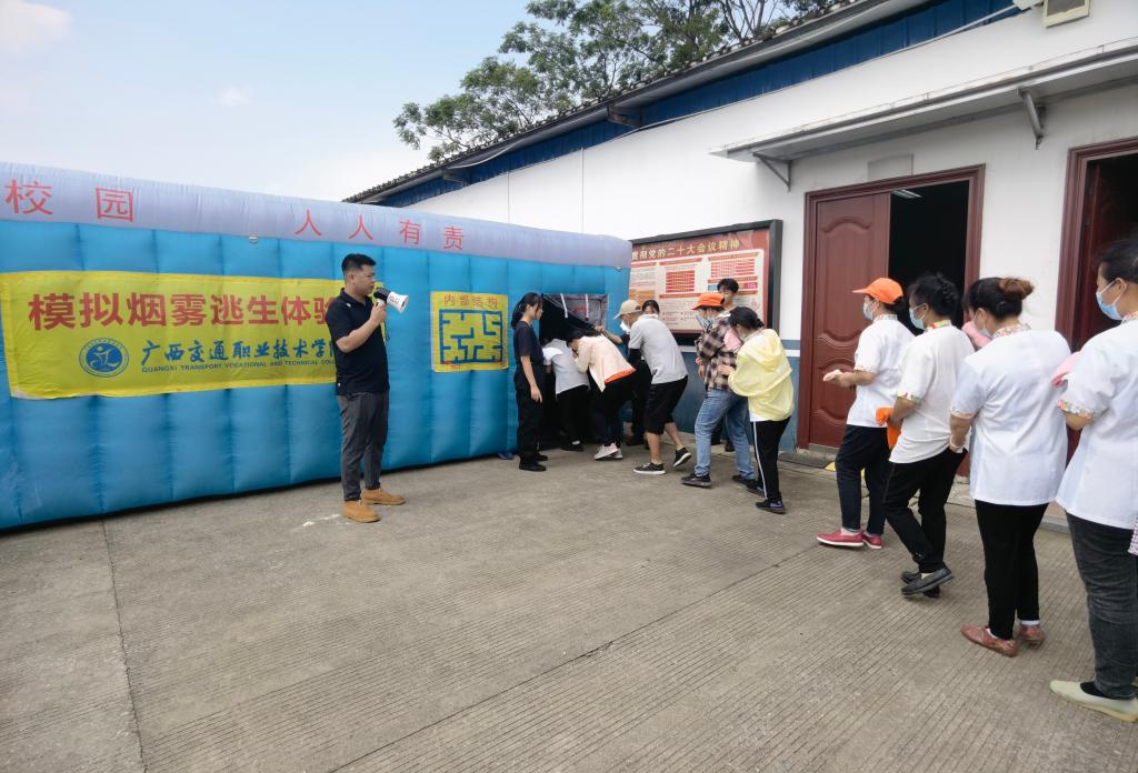 模拟烟道逃生演练环节,保卫干事韦竣耀老师介绍,火灾中浓烟的危害大于明火,浓烟环境中人如何克服心理恐惧、正常发挥逃生技能提出了更高的要求。不少体验者纷纷表示:“在模拟实战环境中体验那种无助、恐惧和压迫感并最终顺利逃出来,比单纯讲解理论知识效果要好,实用感更强”。