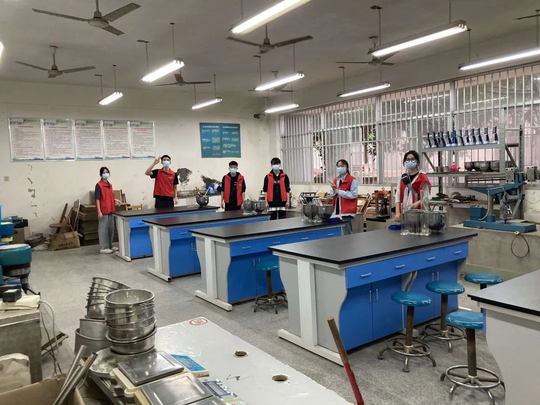 为推动“劳动+四育”在我院落地生根,4月27-28日学院团委组织“铺路石”团队走进实训室、教学工场开展志愿公益劳动实践。院楼实训室以及教学工场是学院师生日常学习、教研以及工作的重要场所,为给师生营造整洁有序的教学工作环境,“铺路石”团队在张溯、胡清玮、黄世源三位指导老师的带领下,以”不怕苦、不怕脏、听从指挥、团结协作和精益求精”的”铺路石”精神,对实训室的仪器设备精准归整、工场的设备再维护、隐患再排查,并着重完成了混凝土、水泥实训室的卫生死角、卫生顽疾的清理。同学们通过共同打扫实训室,维护平台仪器设备,为中心实训室减轻了工作负担,营造了良好的实训教学环境和研学氛围。