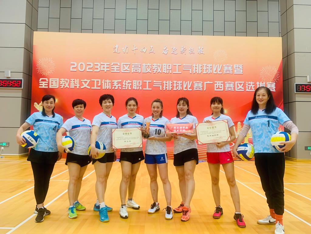 5月12日—14日,由自治区教育工会主办的“2023年全区高校教职工气排球比赛暨全国教科文卫体系统职工气排球比赛广西赛区选拔赛”在广西体育中心拉开序幕。本次比赛设男子组、女子组、专职工会干部组三个组别,共有53所高校共114支队伍,约1200名教职工参赛,PP电子女教工气排球代表队一路“过关斩将”,最终在47支队伍中脱颖而出,获得了季军的好成绩,实现了该赛项零的突破。
