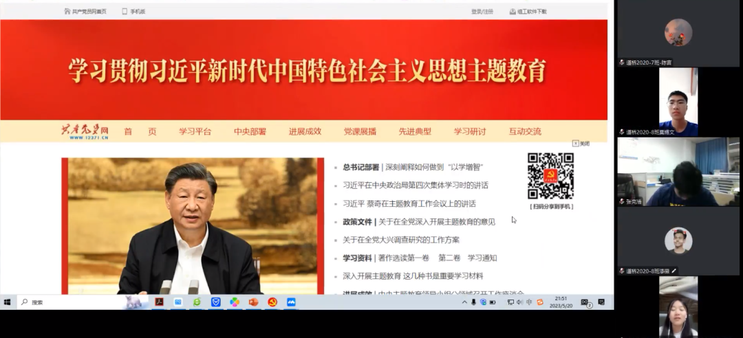 5月20日,路桥工程学院学生第一党支部组织在外跟岗实习的学生预备党员开展学习贯彻习近平新时代中国特色社会主义思想主题教育学习交流会,围绕“用习近平新时代中国特色社会主义思想凝心铸魂筑牢根本、锤炼品格强化忠诚”主题开展学习交流。