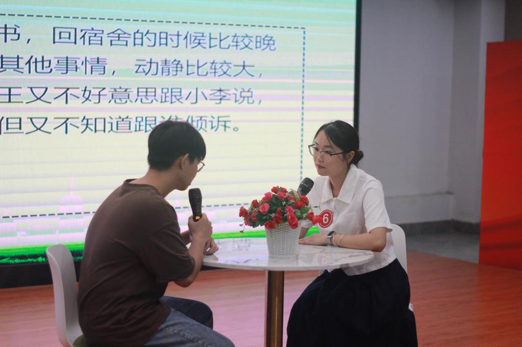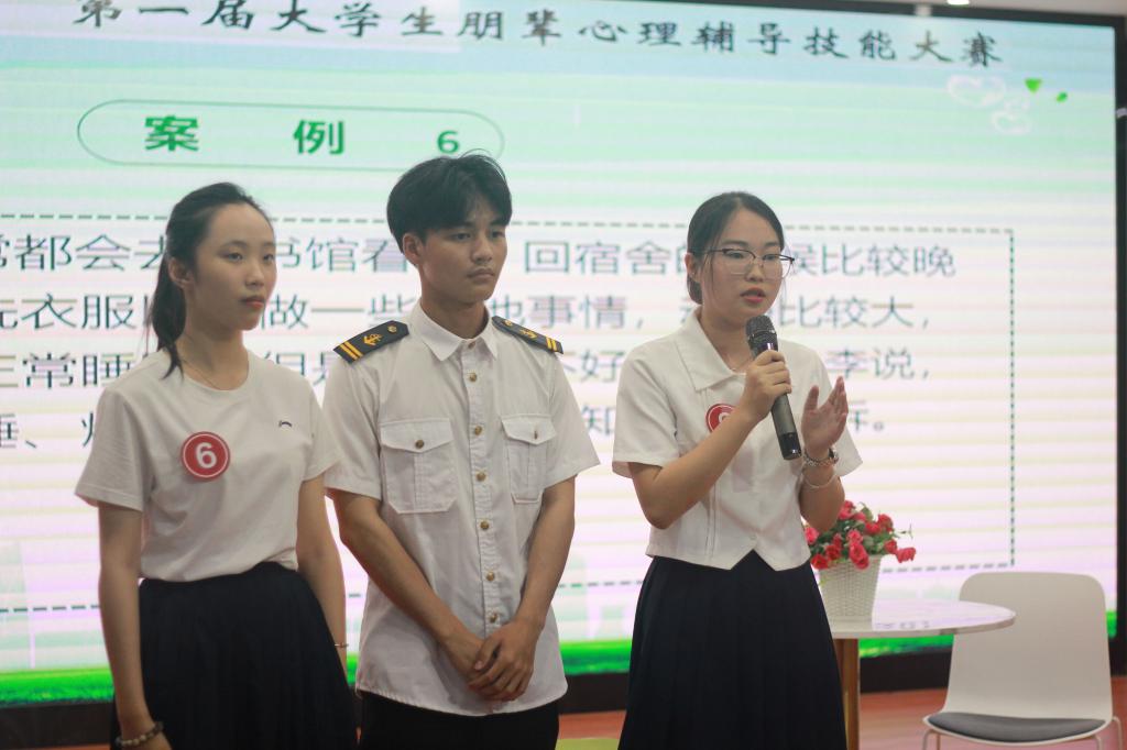 本次比赛共包含心理知识测试、三分钟心理知识宣讲、心理辅导模拟三个环节。充分考察了选手们对心理知识的掌握程度,对朋辈辅导工作职责的清晰认识。在第一环节中,选手们沉着冷静,满怀信心的完成了线上心理知识测试。三分钟心理知识宣讲中,选手们围绕大学生常见的心理困惑以朋辈的角度来宣传了心理知识,宣讲内容生动有趣。心理辅导模拟中,选手们在规定时间内为“来访者”进行朋辈心理辅导,展示倾听、共情、识别和处理心理问题的能力。赛程紧张,精彩纷呈,选手们以卓越的表现赢得了现场观摩学生的阵阵掌声。