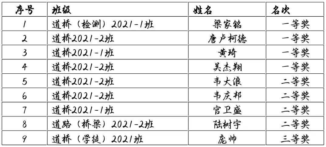 近日,在2023年大学生学科竞赛——第十六届大学生先进成图技术与产品信息建模创新大赛(省赛)中,由路桥工程学院2021级梁家铭、唐卢柯德、黄琦、吴杰翔、韦大浪、韦庆邦、官卫盛、陆树宇、庞帅9名同学组成的参赛队,一路披荆斩棘,获桥梁数字化设计创新赛道特等奖,最终获道桥类团体一等奖1项,个人全能一等奖4项,二等奖4项,三等奖1项,拿到了国赛的入场券。